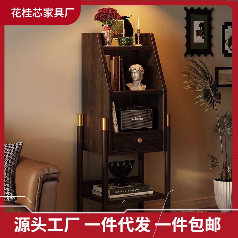 书架置物架落地组合书柜家用收纳边柜儿童美式立柜客厅多层展示柜