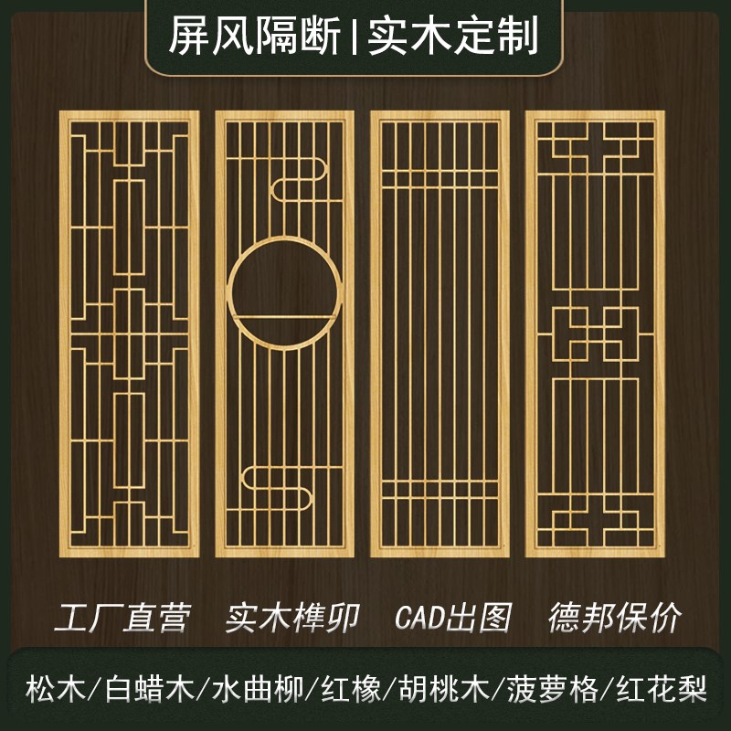 东阳木雕实木花格镂空中式木格栅屏风隔断客厅背景墙吊顶仿古门窗