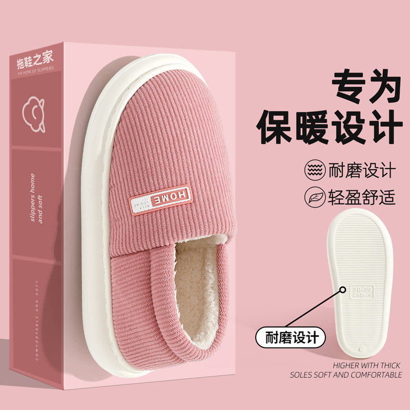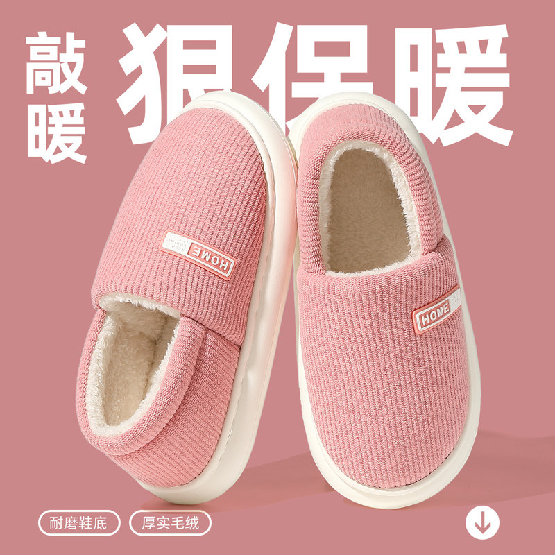 红豆包跟棉拖鞋女士冬季2025新款室内家居厚底防滑保暖加绒棉鞋男