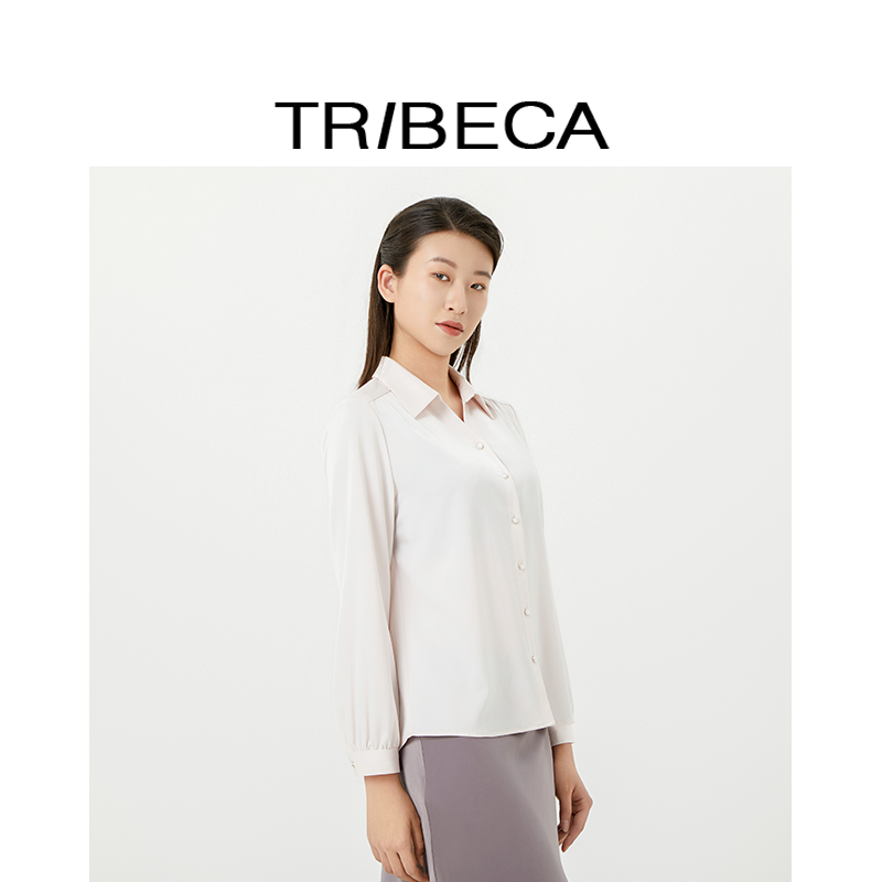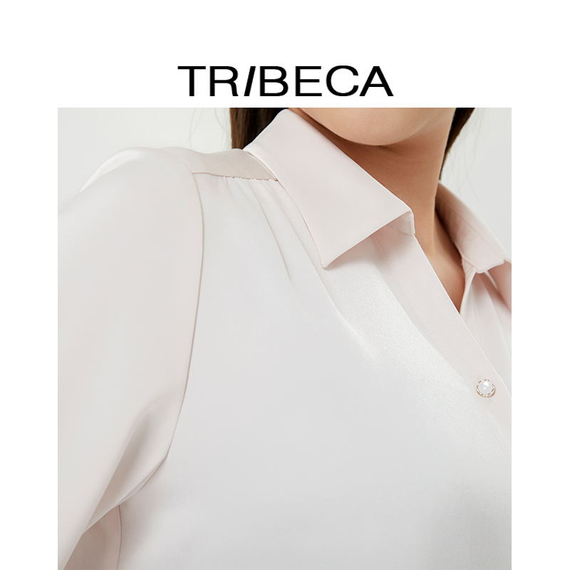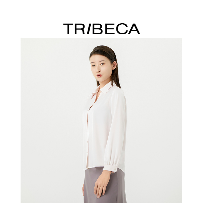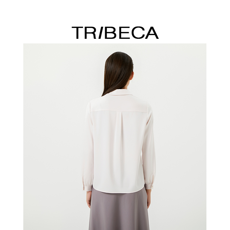 TRIBECA翠贝卡商场同款2024春季新款雪纺简约纯色长袖衬衫