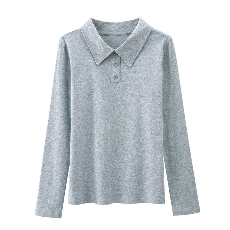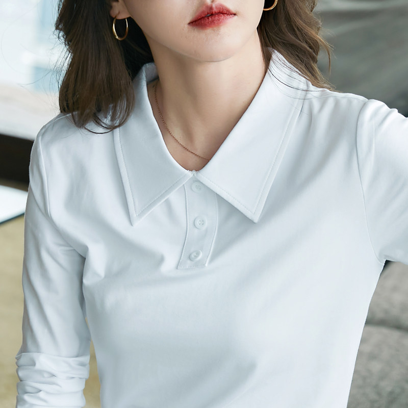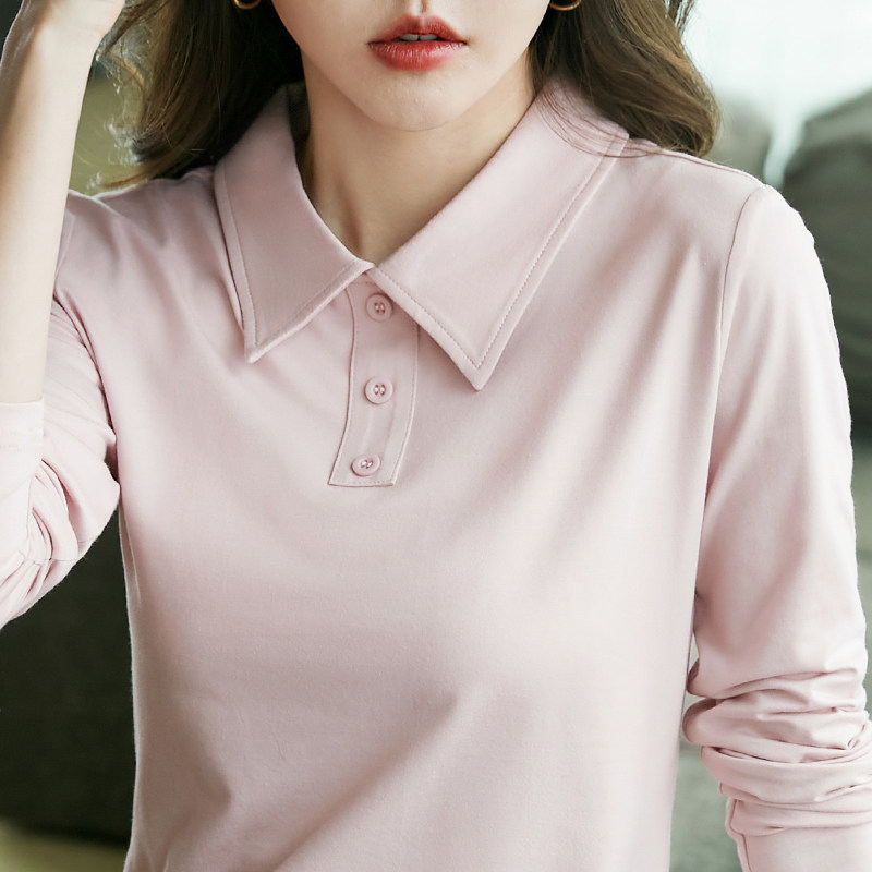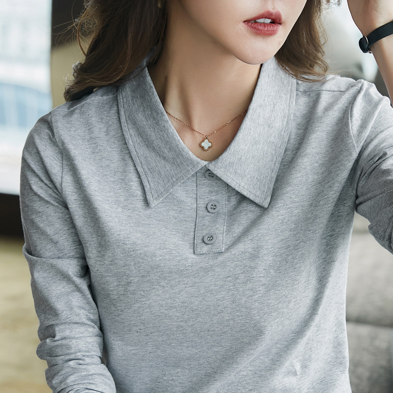 POLO领纯棉长袖t恤女大码宽松老人秋衣衬衣中老年妈妈打底衫上衣