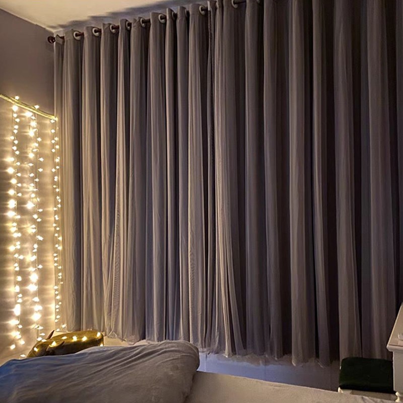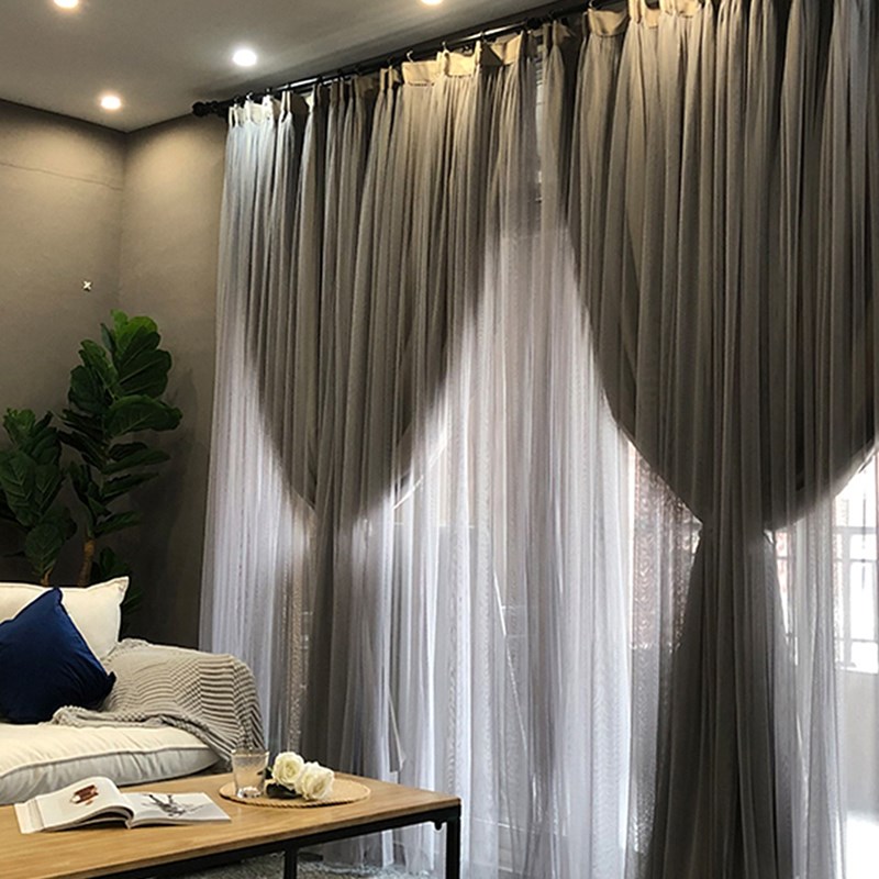 灰布灰纱布纱一体复古法式蕾丝花边纱帘轻奢卧室客厅阳台遮光窗帘
