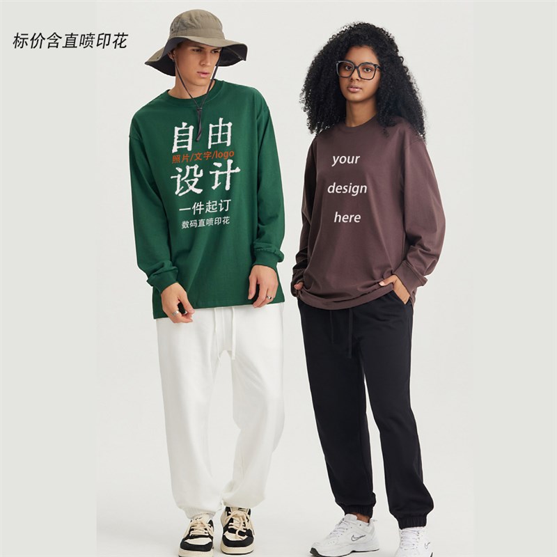 长袖t恤定制团体制服工作服男女重磅DIY直喷来图喷漆印制LOGO