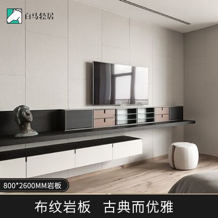 白马布纹岩板别墅客厅沙发电视护墙板背景墙瓷砖800*2600满铺大板