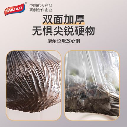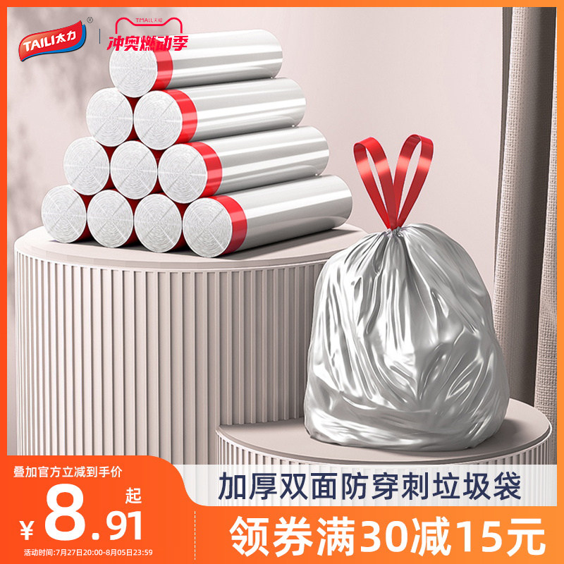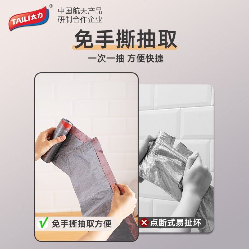 太力抽绳垃圾袋家用厨房手提式加厚特厚大号黑色钢袋办公室塑料袋
