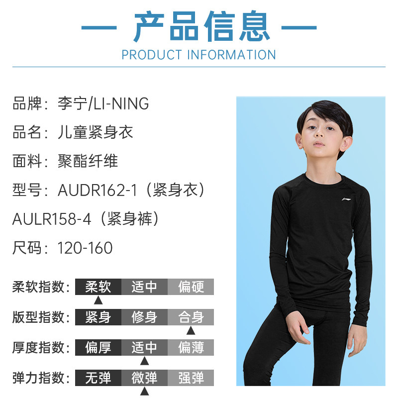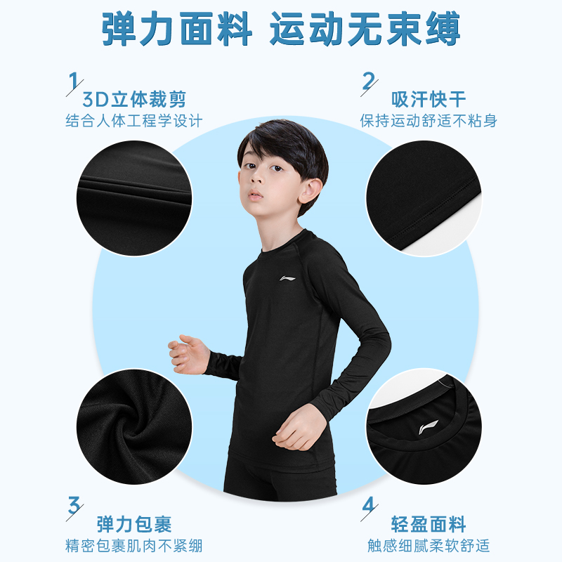 李宁儿童紧身衣紧身裤运动套装打底服篮球足球快干衣男孩健身套装