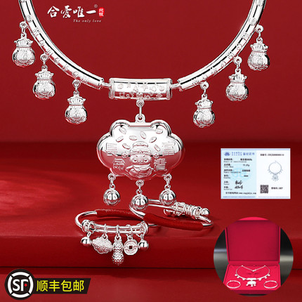 S999纯银长命锁项圈蛇龙新生儿足银锁男女婴儿宝宝满月周岁送礼物