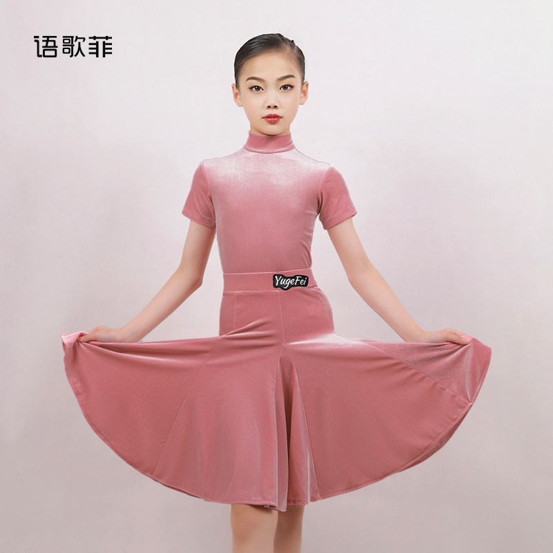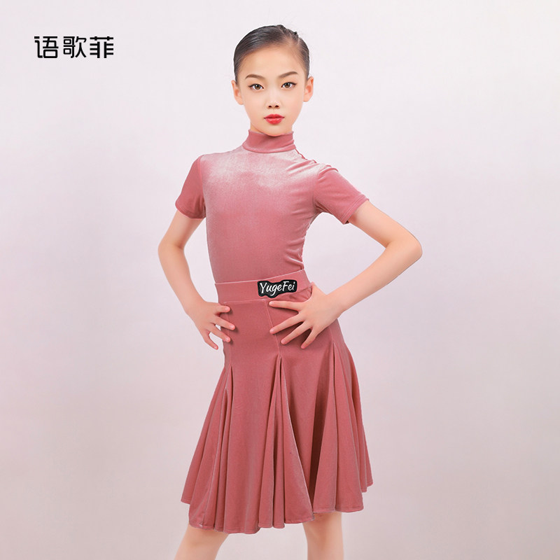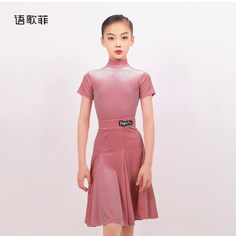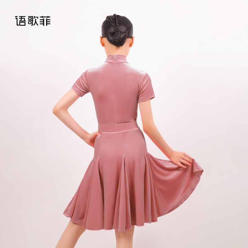 语歌菲拉丁舞规定比赛服女童无鱼骨韩国绒短袖高领新款高级国标舞