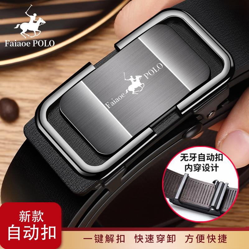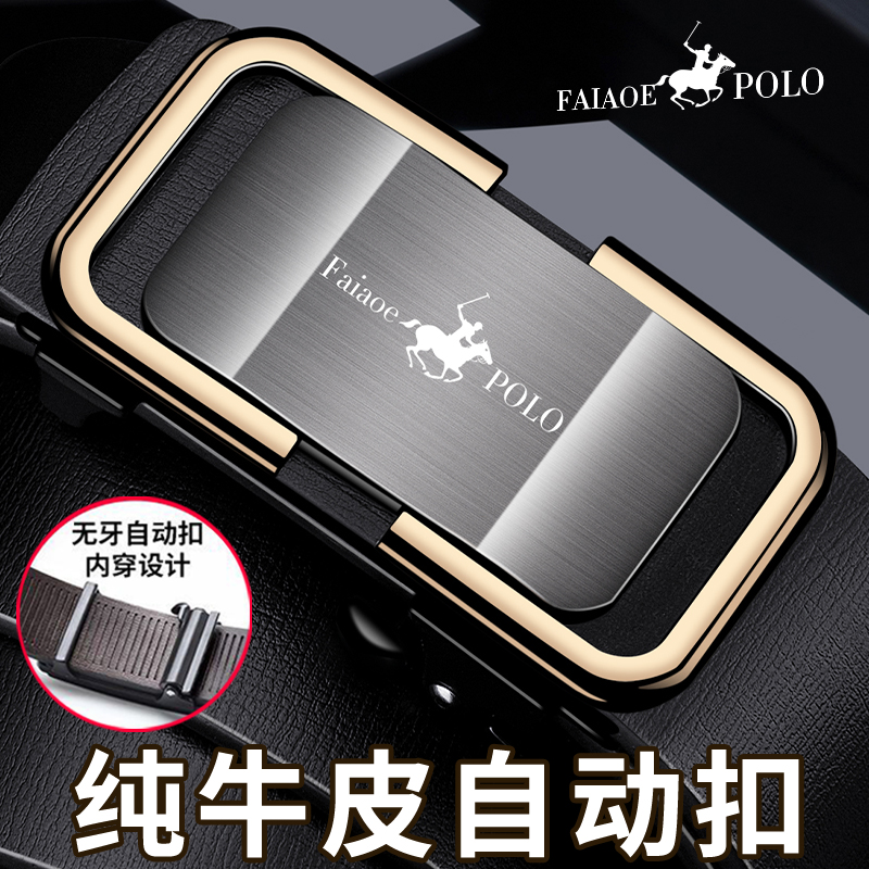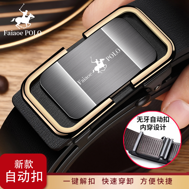 保罗2024皮带男士真皮自动扣腰带潮版青年中年商务百搭纯牛皮裤带
