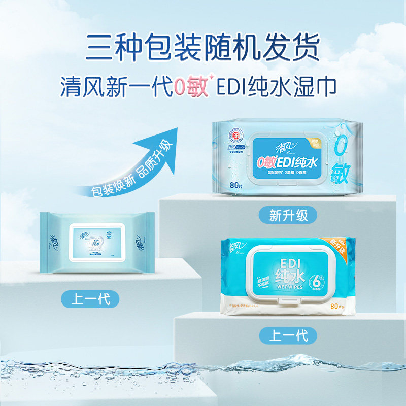 清风湿巾80片EDI纯水湿巾纸家庭实惠装擦手湿纸巾清洁家庭实惠装