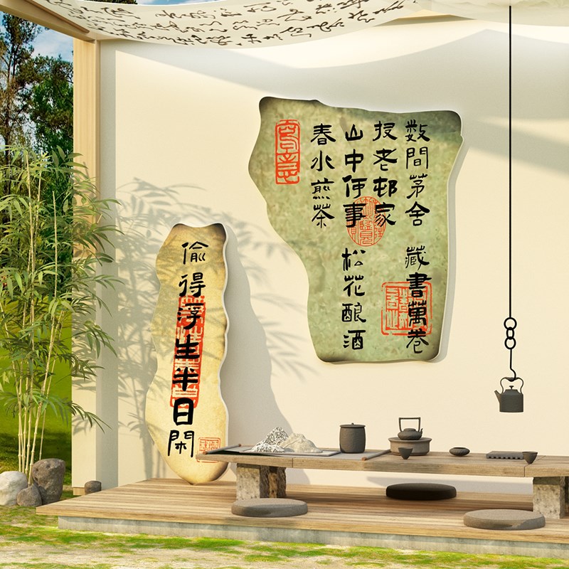 网红拍照区茶室布置背景墙装饰挂画打卡叶店楼馆文化农家小院贴纸