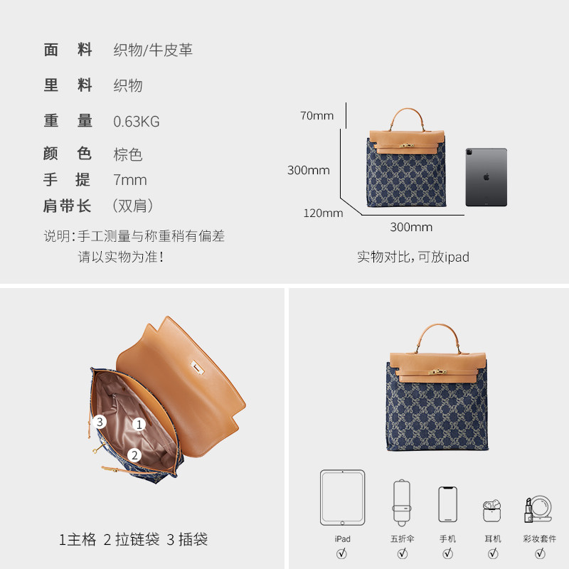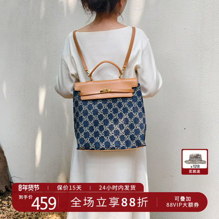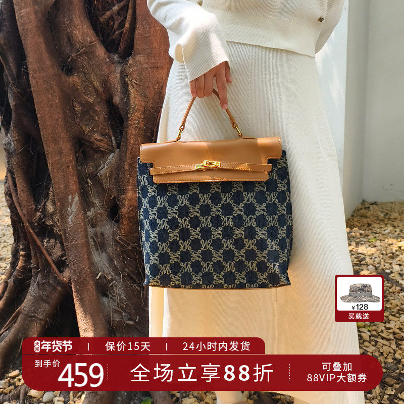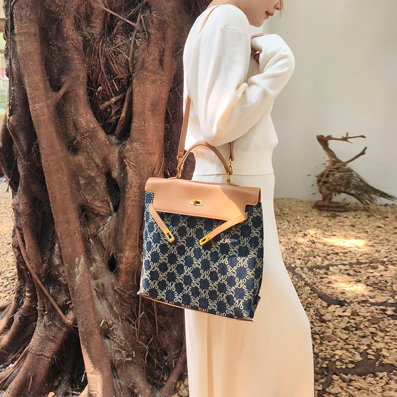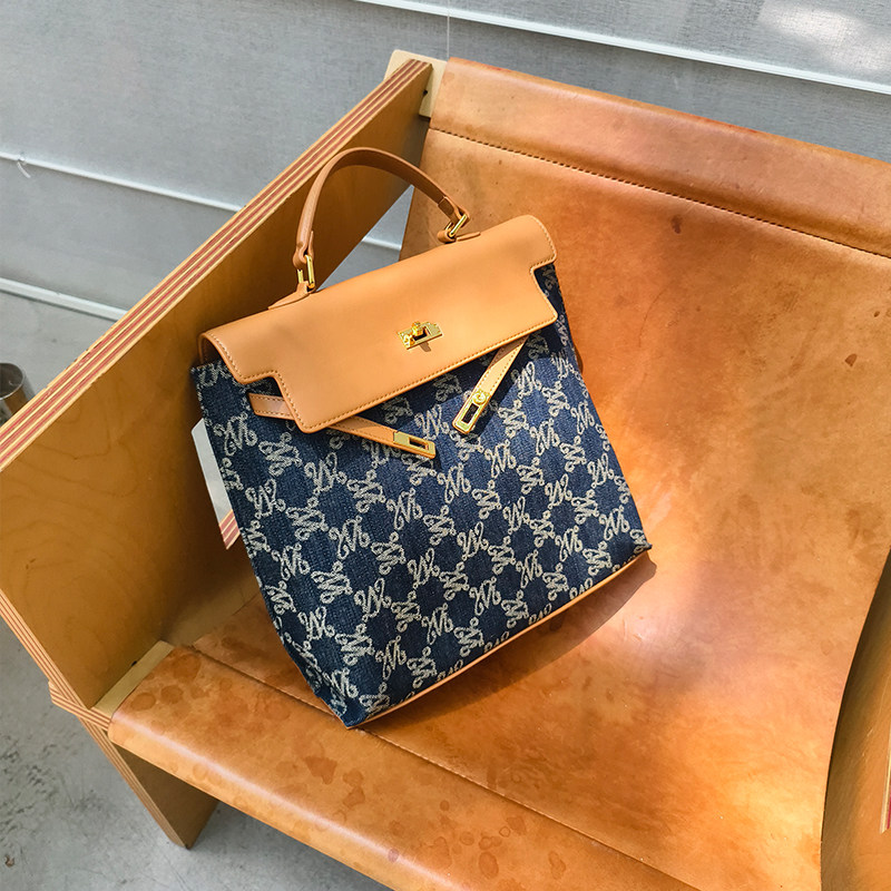 万里马老花包手提包双肩包时尚牛仔丹宁通勤大容量包包女