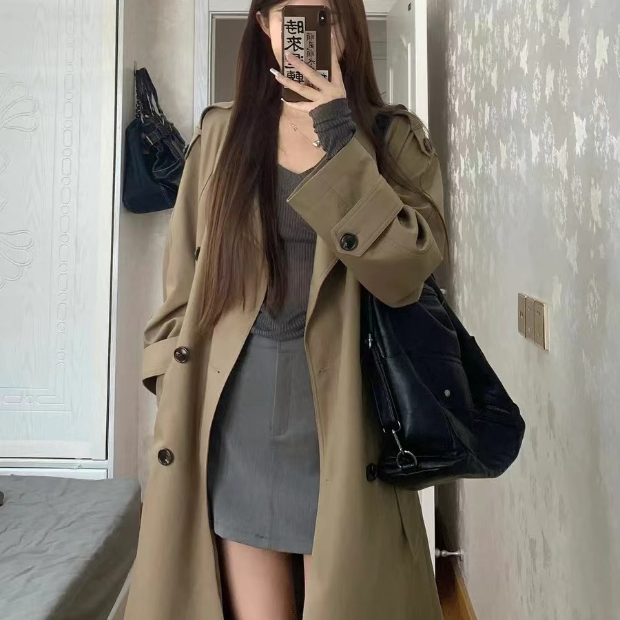 高级感西装领卡其风衣外套女春秋新款气质宽松双排扣中长款大衣服