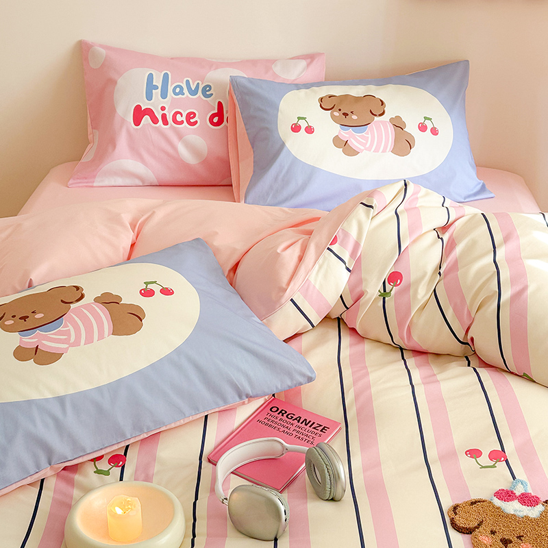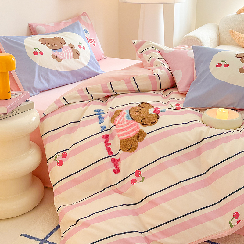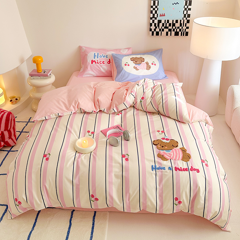 新款卡通床上四件套全棉纯棉可爱毛巾绣被套被罩床单床笠款床品4