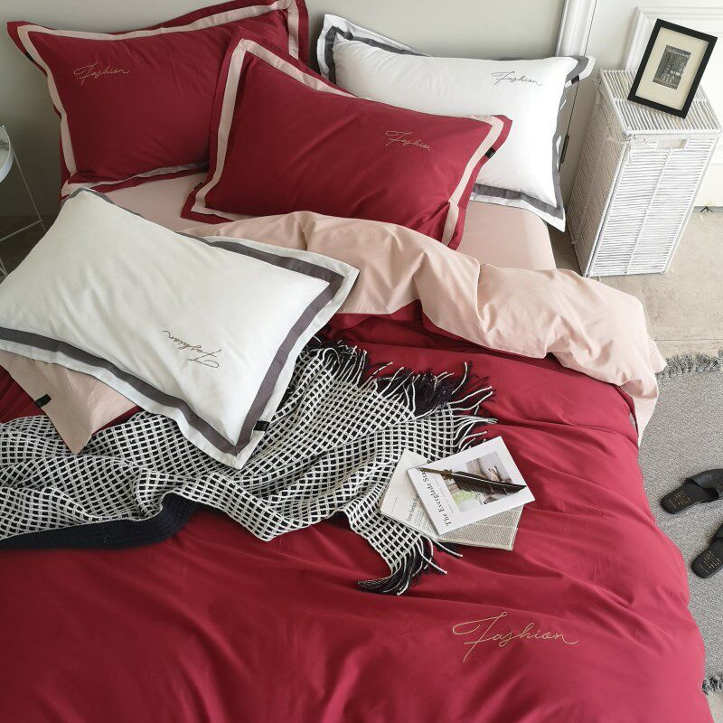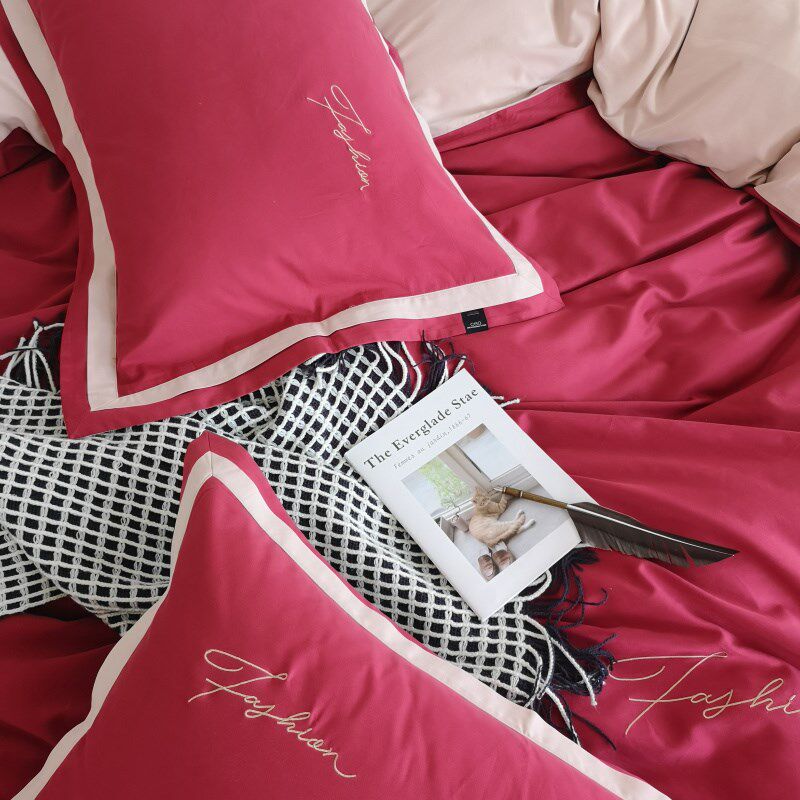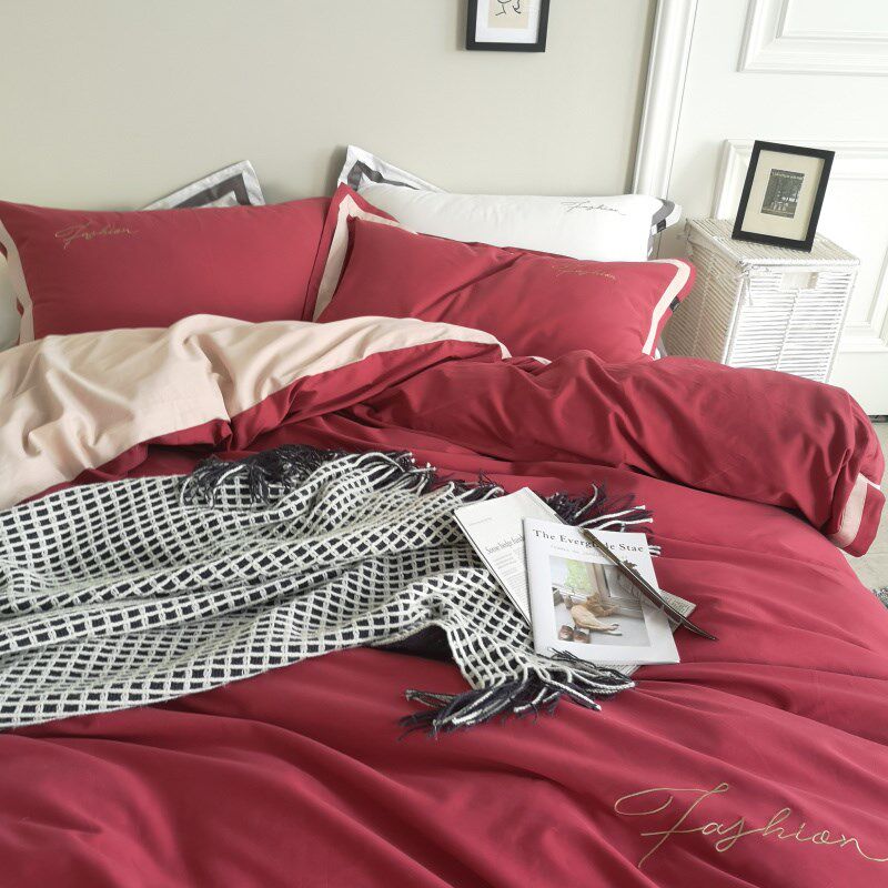简约全棉秋冬加厚保暖磨毛红色结婚庆四件套喜被床上用品床单