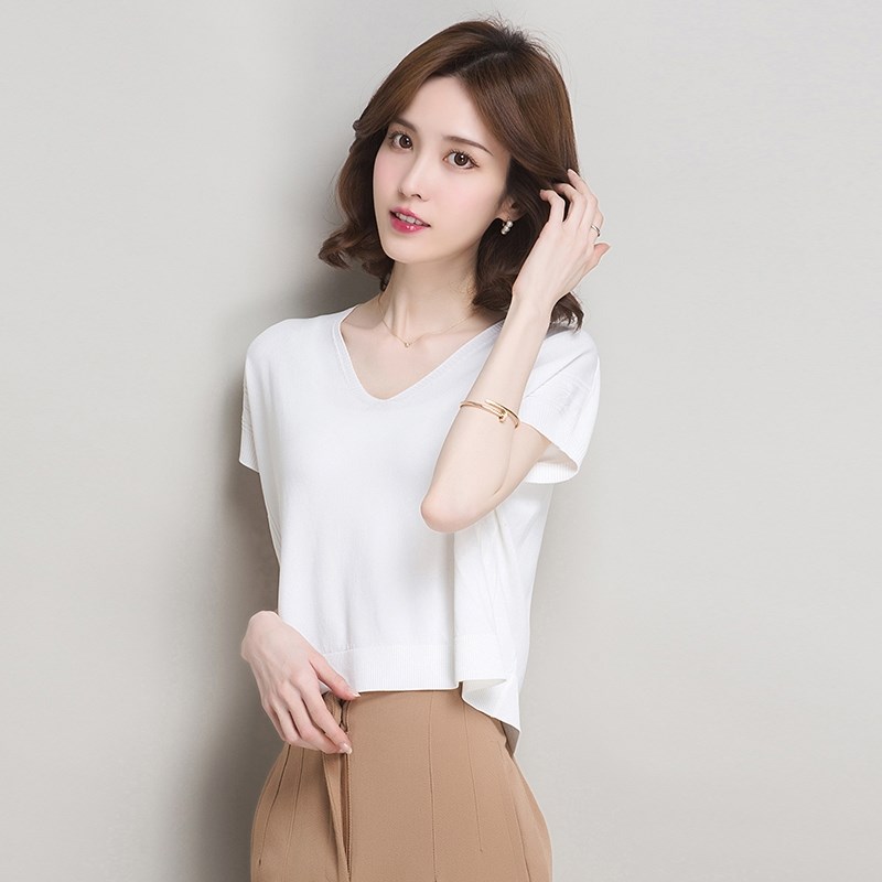 短款上衣年轻妈妈夏装2025新款短袖t恤女宽松夏季薄款冰丝针织衫