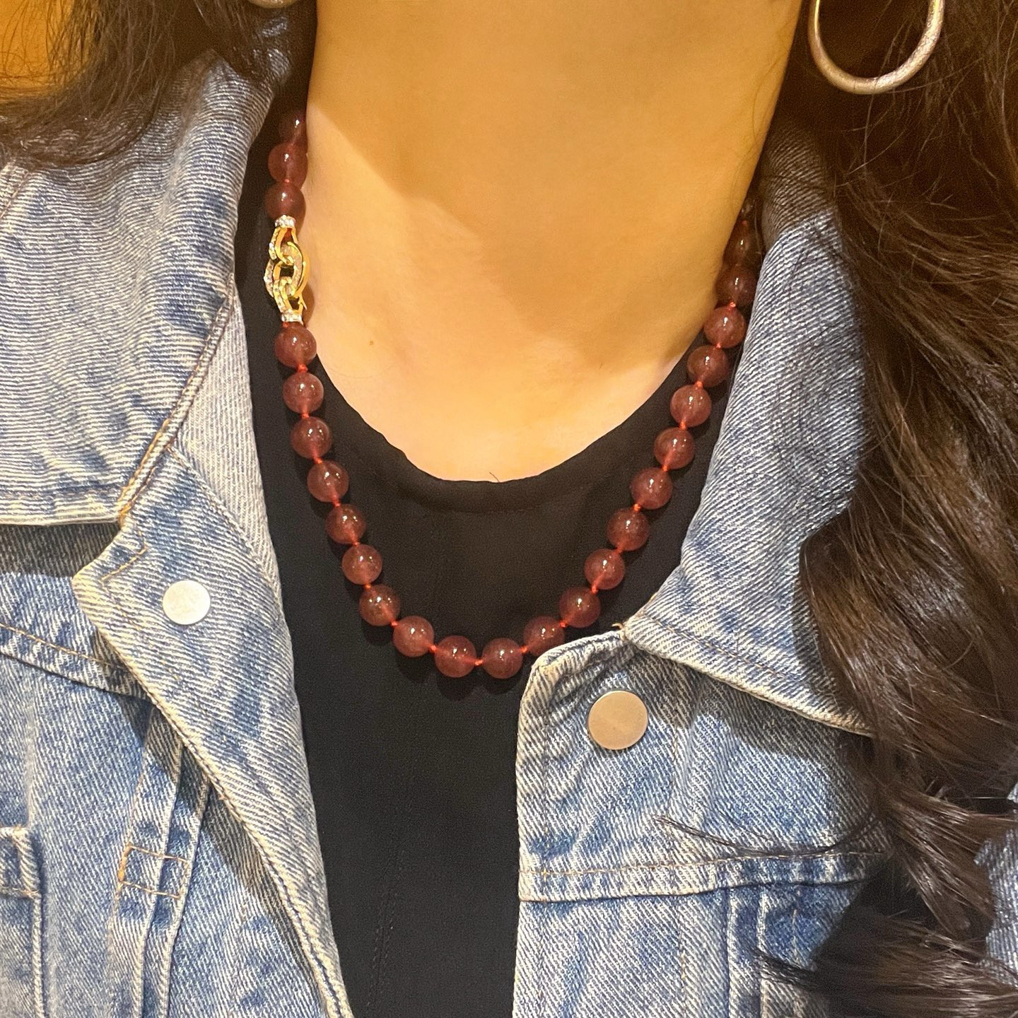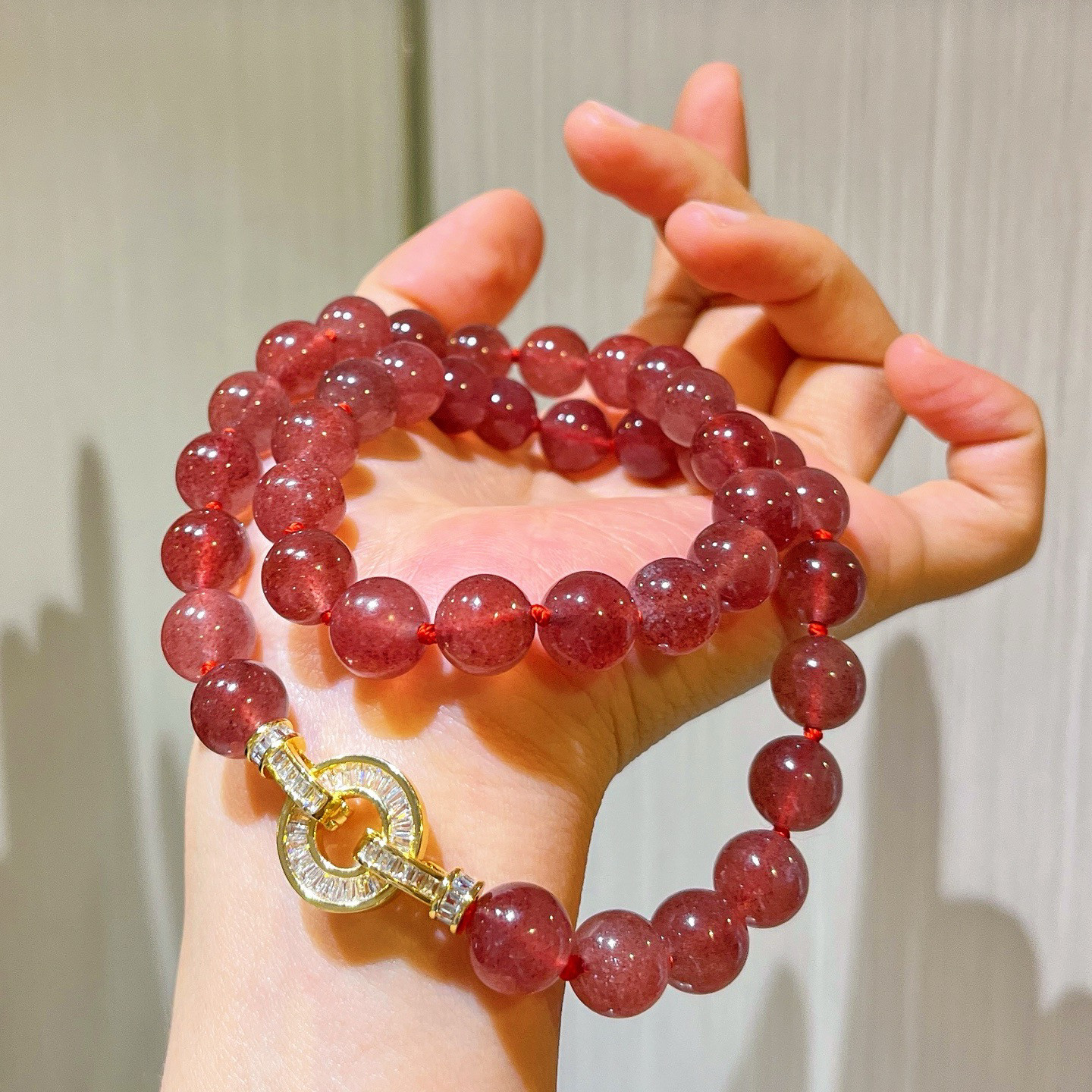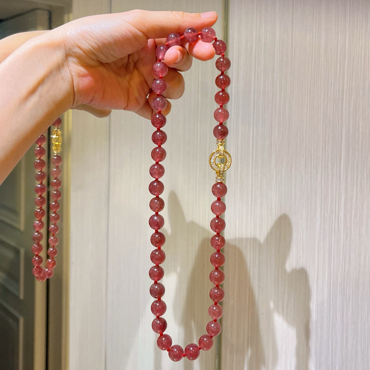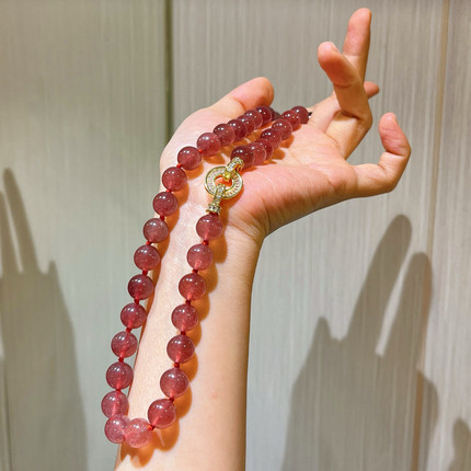 10mm鸽血红天然草莓晶圆珠项链锁骨链