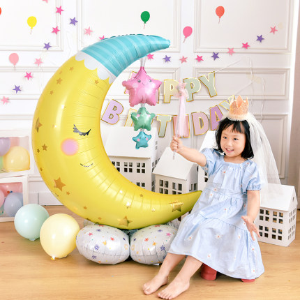 小红书月亮装饰儿童卡通生日场景铝膜派对ins风周岁宝宝满月布置
