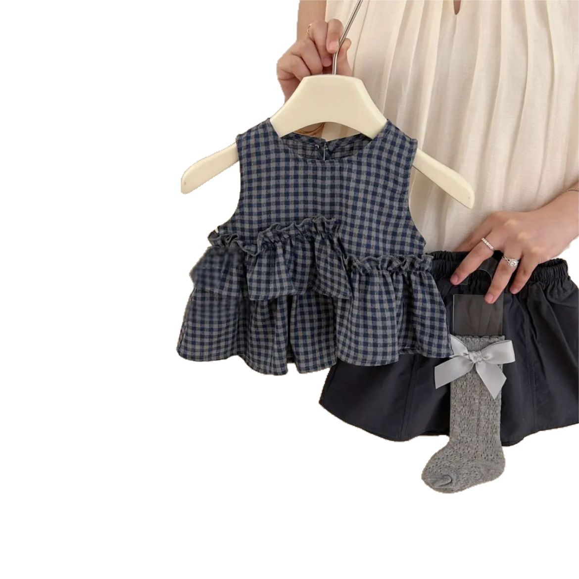 女童格子背心套装夏季新款宝宝洋气无袖上衣短裤婴儿纯棉小衫裤子