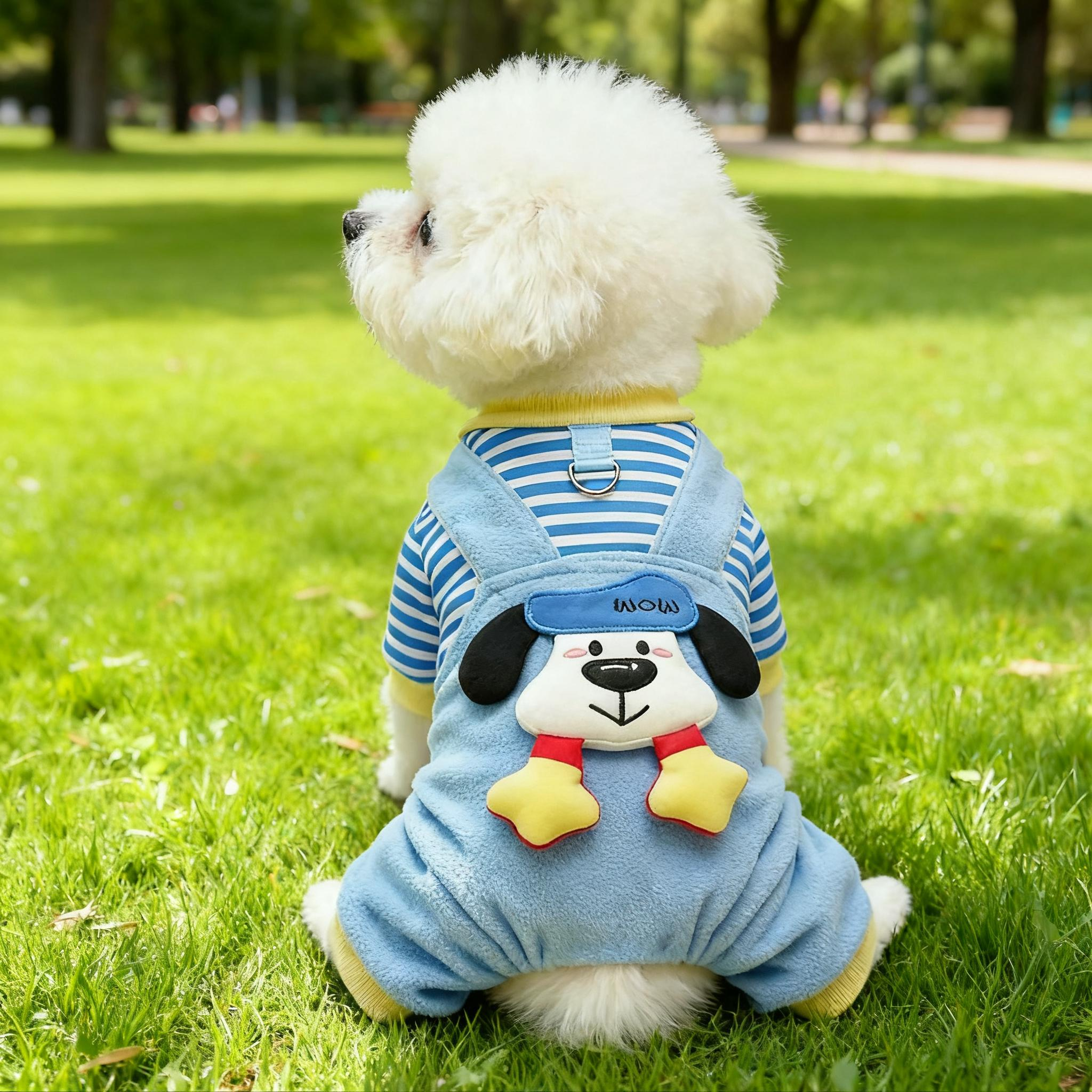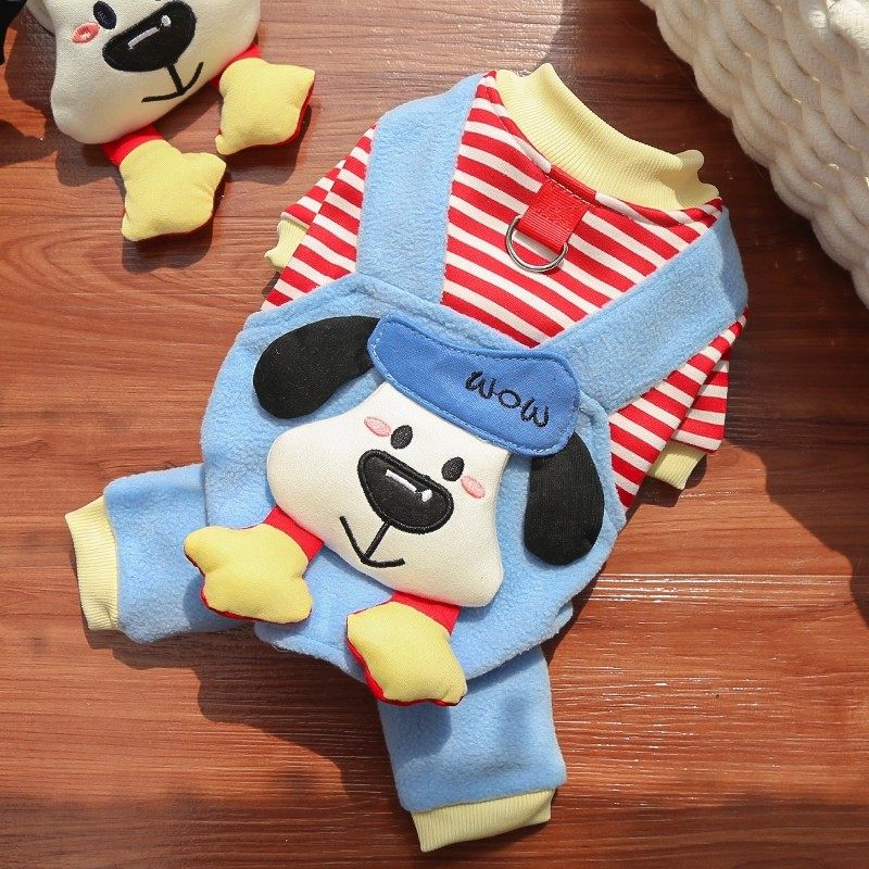 狗狗衣服秋冬新款背带比熊泰迪博美卡通条纹可牵引猫咪保暖四脚衣