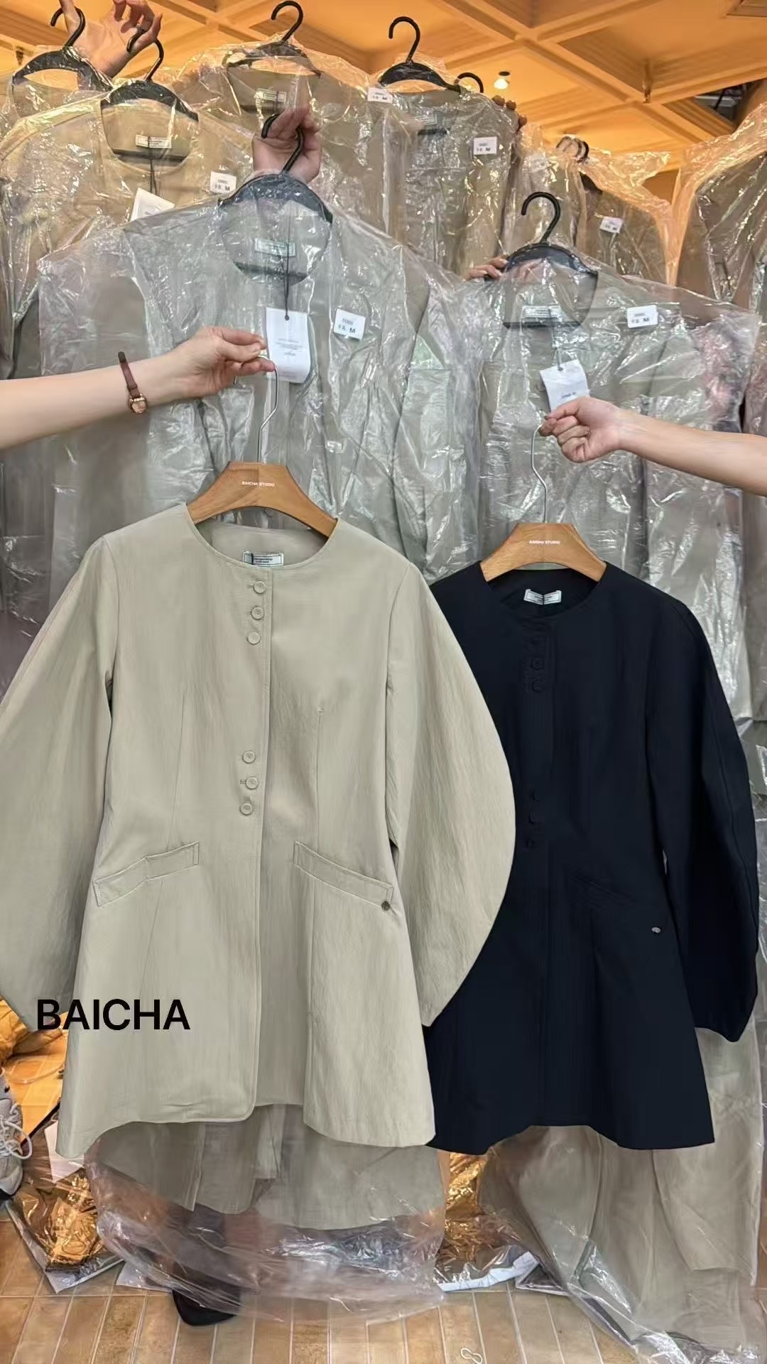 2025早秋季新款韩系简约圆领风衣外套百搭休闲宽松显瘦中长款外套