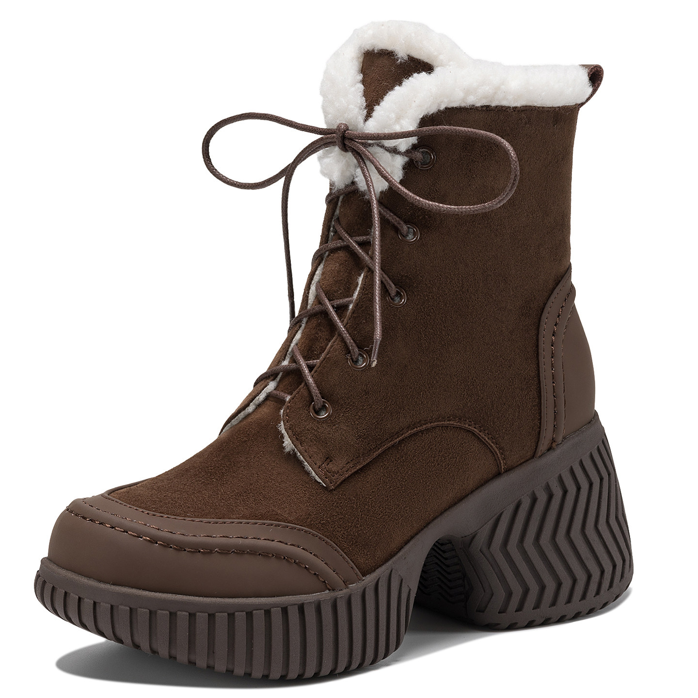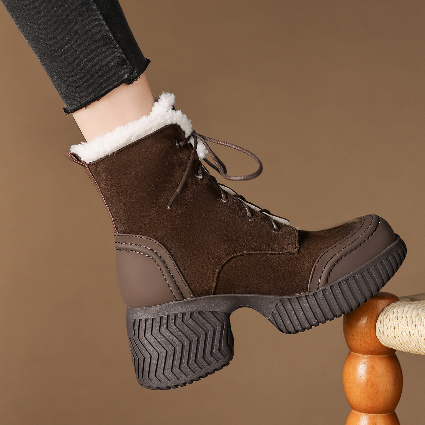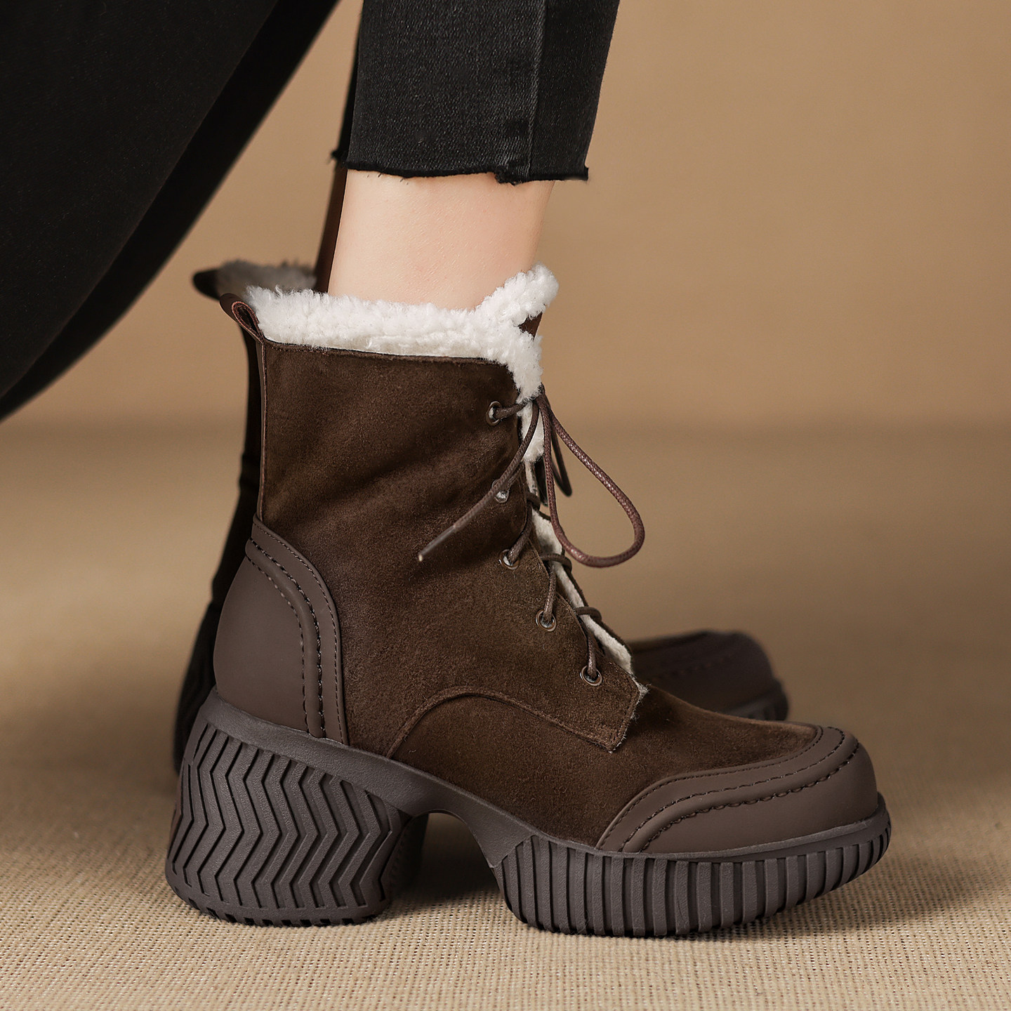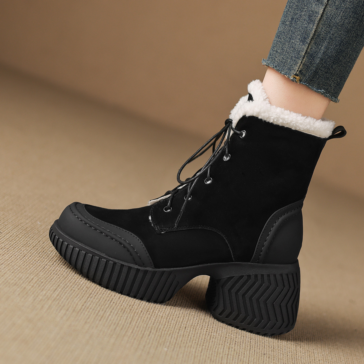 靴子2025秋冬季新款通勤厚底系带短筒马丁靴加厚保暖粗跟女士短靴