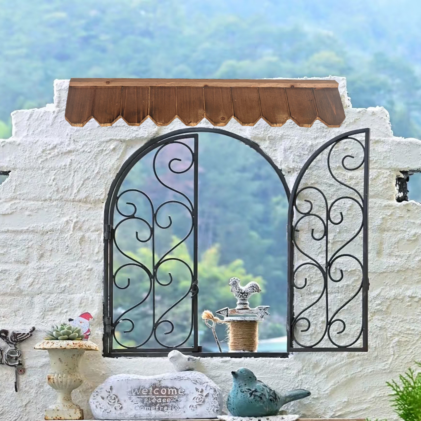 订制款美式木质花园屋檐装饰壁饰阳台长方形防腐木实木假窗挂件