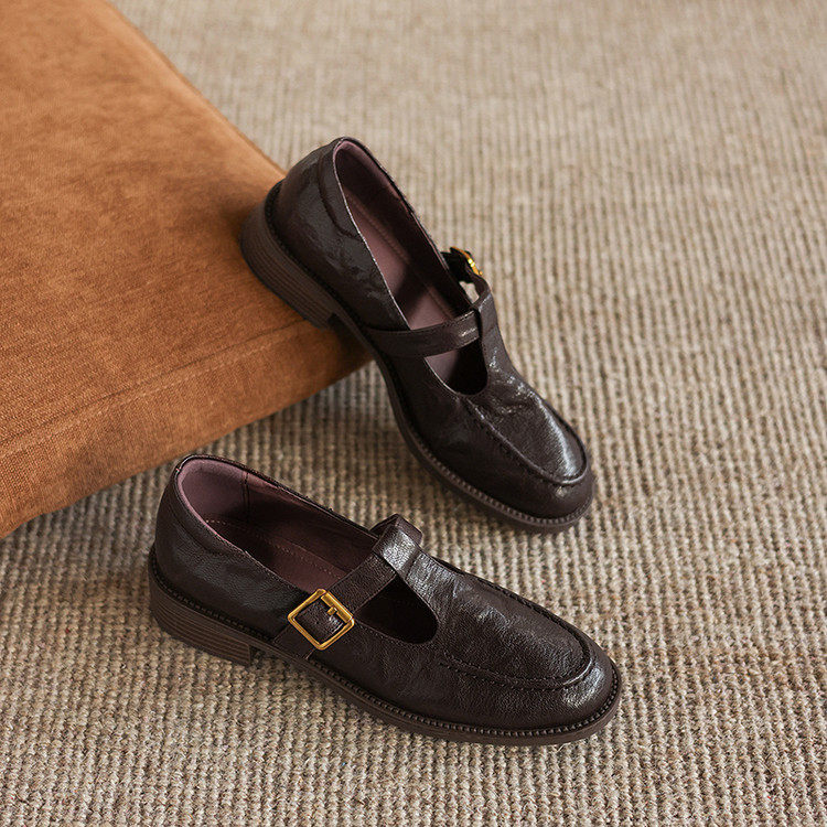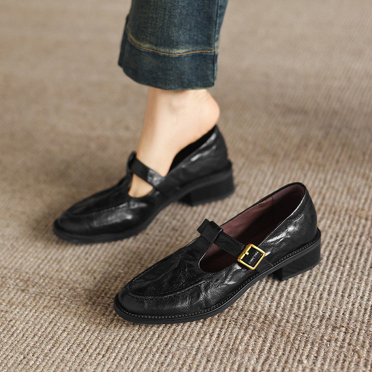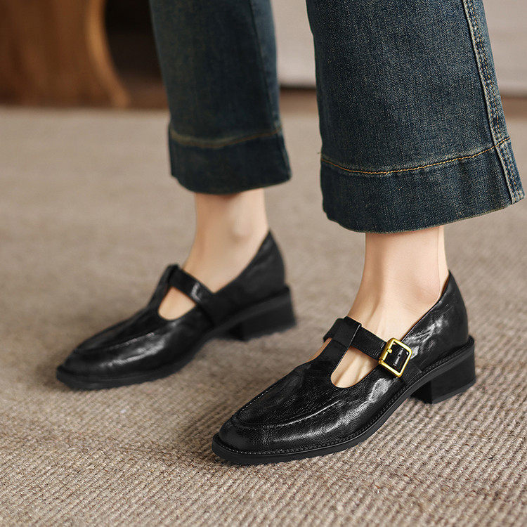 2025新款真皮女鞋粗跟中跟单鞋时尚百搭休闲鞋舒适软底豆豆鞋