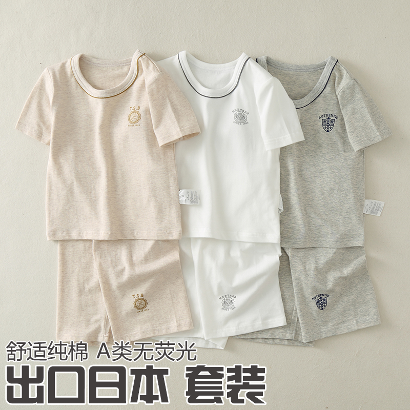 夏季儿童A类睡衣家居服男童纯棉短袖T恤五分裤套装薄款透气空调服