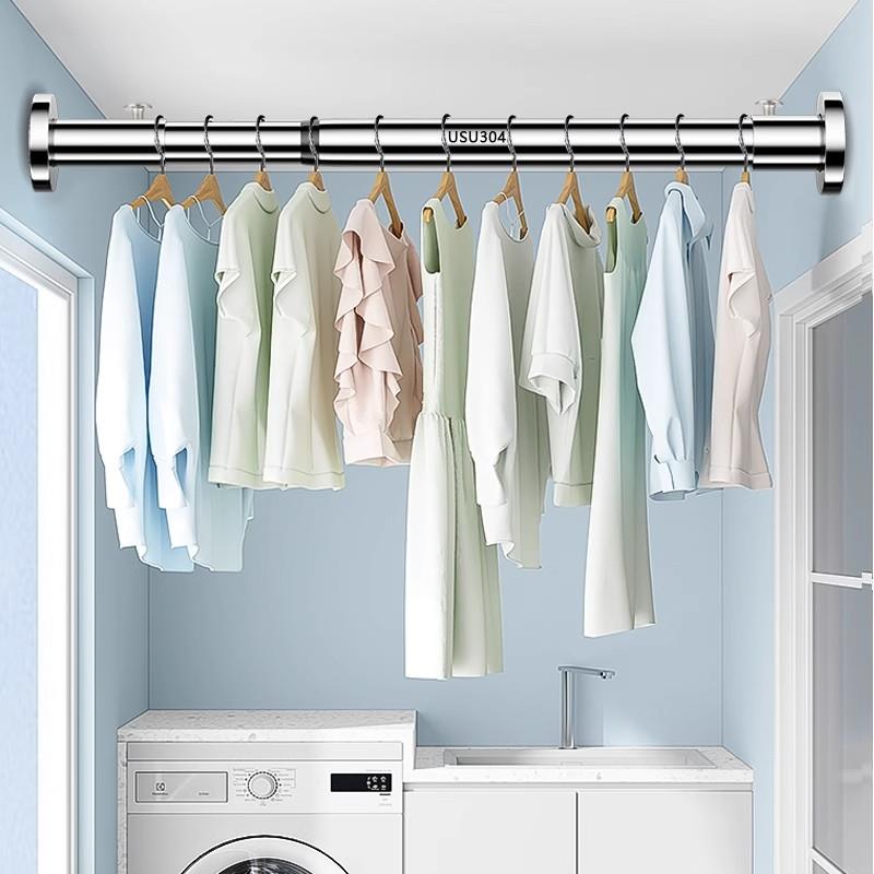 304不锈钢打孔伸缩晾衣杆阳台固定式晾衣架衣柜浴室撑杆一根挂杆