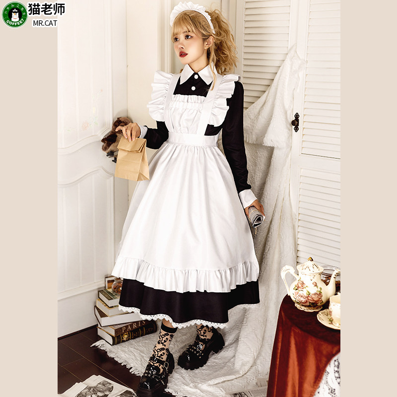 猫老师原创正统女仆装大码长款男穿女装大佬黑白色动漫COS女佣服