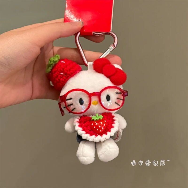 可爱kt猫薯条毛绒玩偶公仔包包挂件草莓帽kitty钥匙扣车挂饰礼物