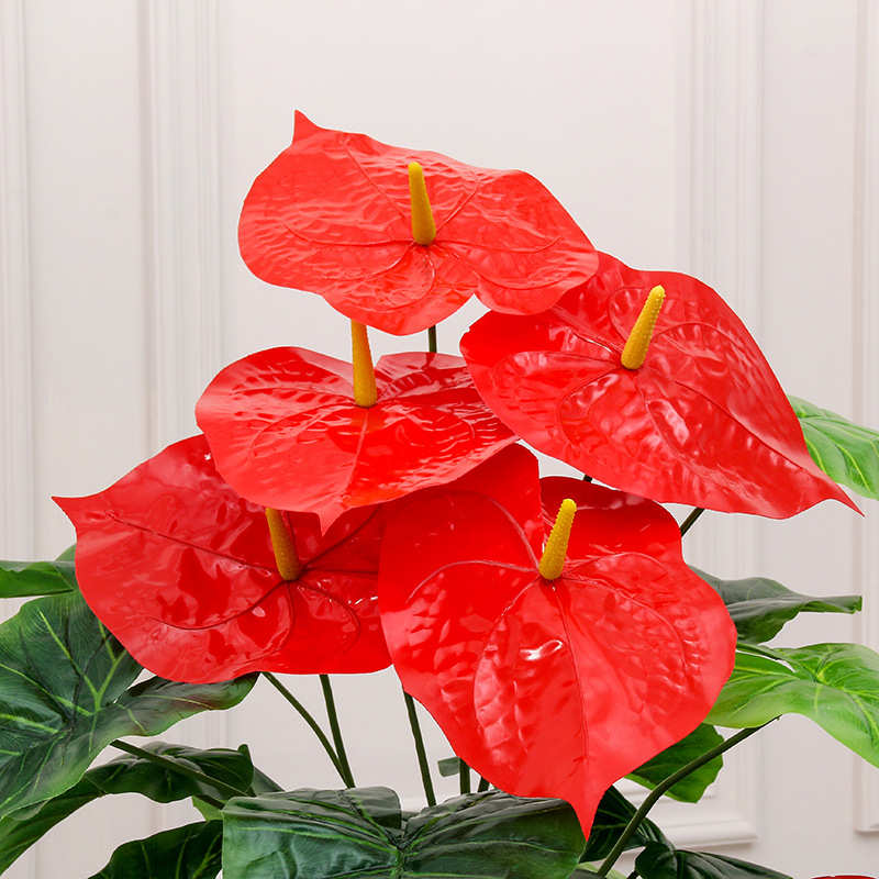 大型室内仿真绿植摆件客厅玄关装饰假花红掌盆栽植物塑料盆景摆饰