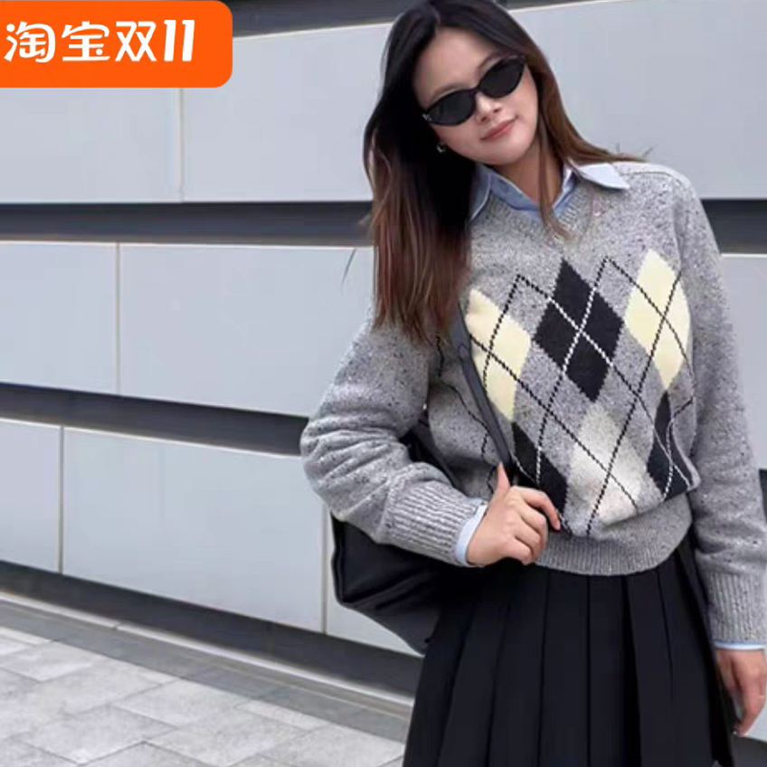 正品针织衫开衫2025冬新品费尔岛毛衣菱格纹含绵羊毛MBE4CAR022