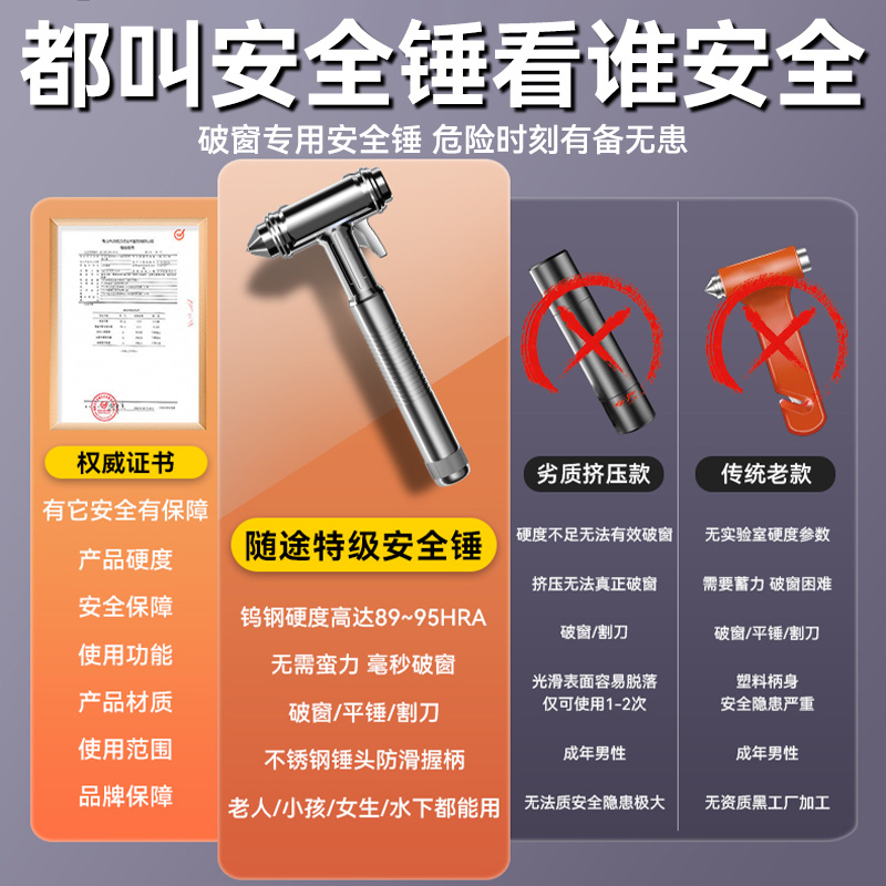 消防专用安全锤学校办公楼钢化玻璃应急破窗神器检查用逃生救生锤