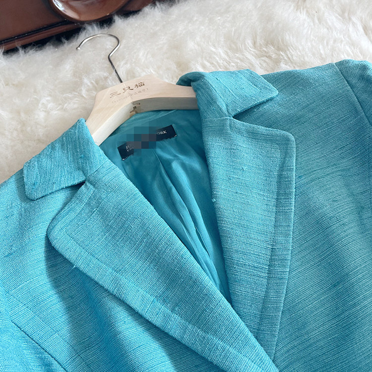 柞蚕丝西服美单优雅”80姆米100%重磅真丝复古短款西装外套女春夏