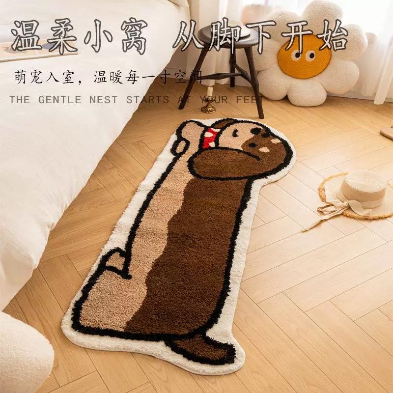 簇植绒地毯爱卡通卧室床边毯女生房间级感沙发客厅猫垫子