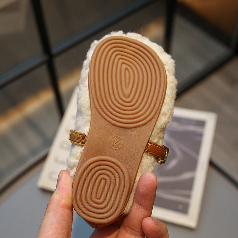 女童毛毛鞋秋冬新款保暖加绒公主鞋女孩平底豆豆童鞋一脚蹬棉鞋潮