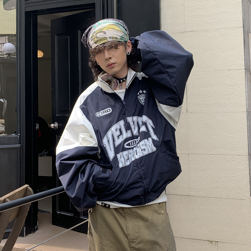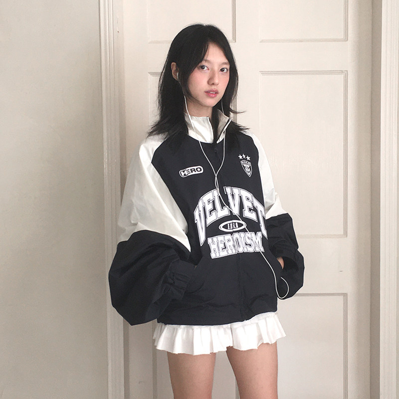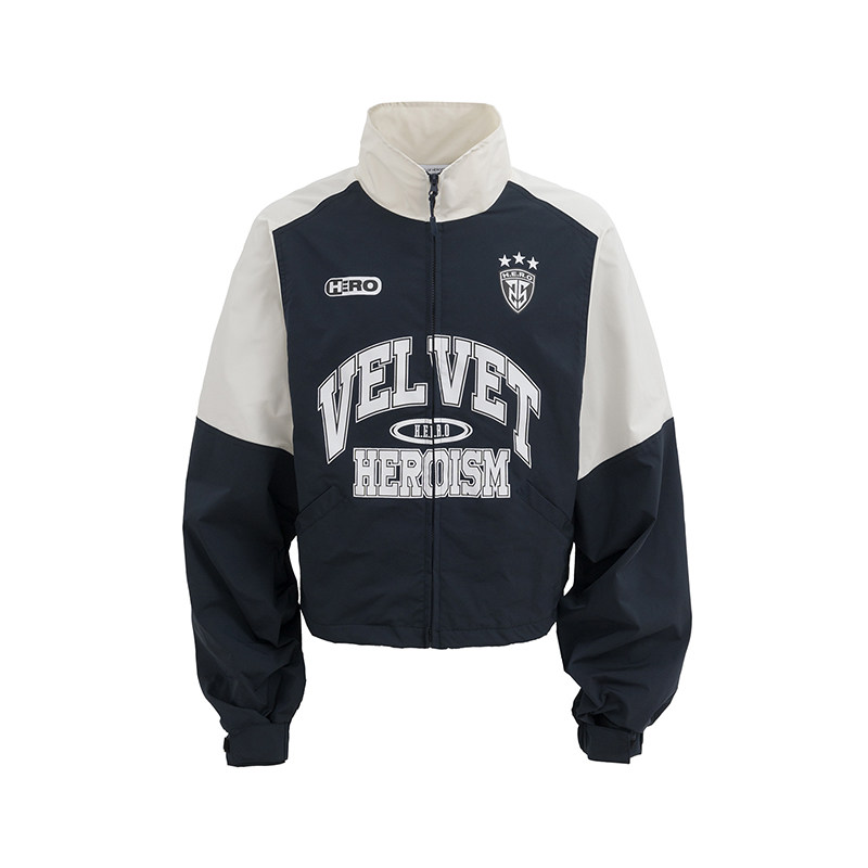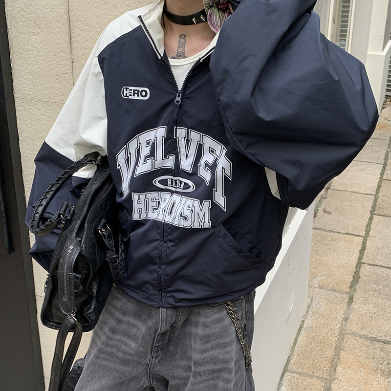 POH 24AW 铃鹿外场廓形尼龙蓝白拼接短款飞行运动拉链夹克外套