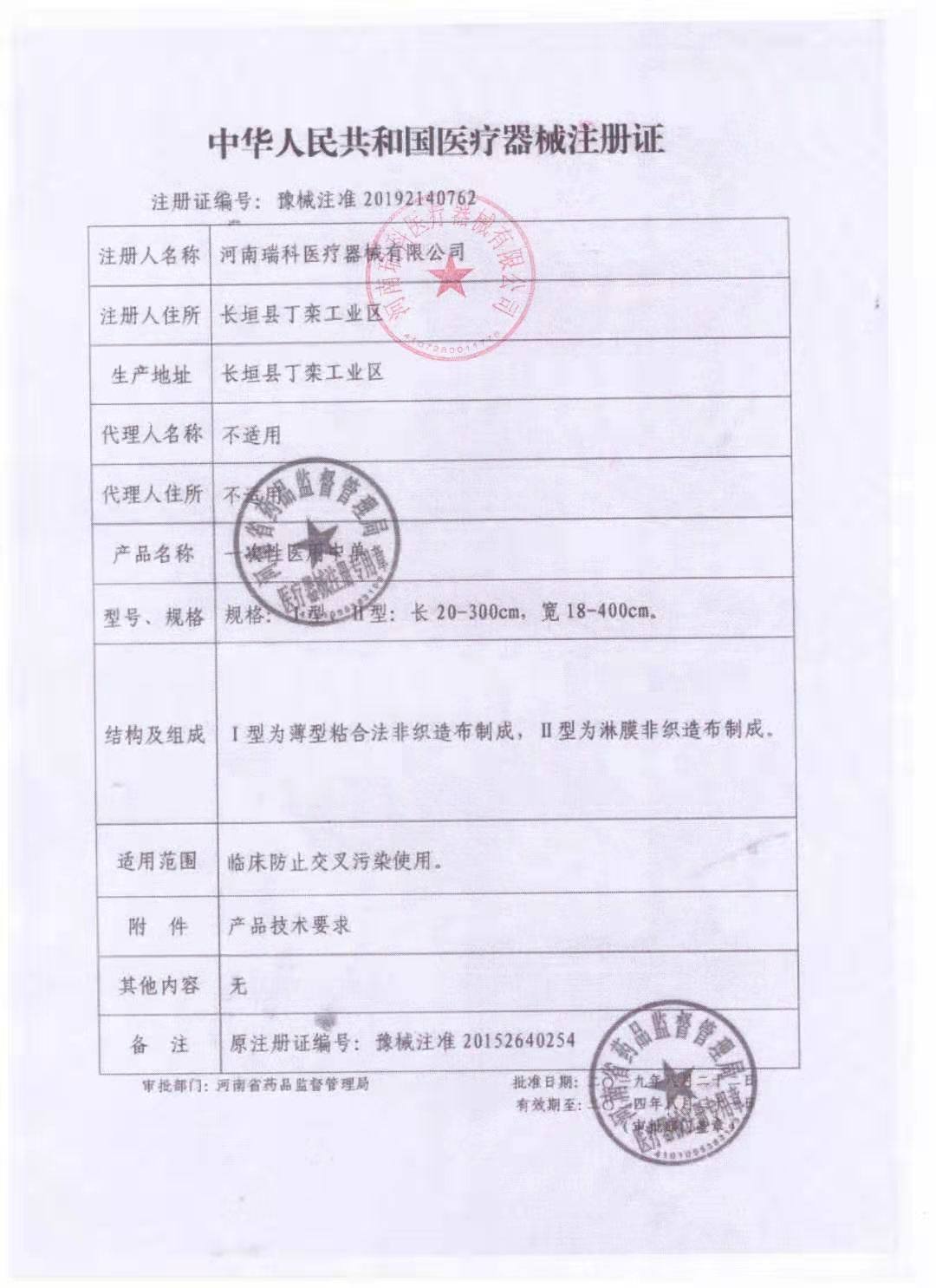 瑞科一次性医用中单无菌灭菌床单