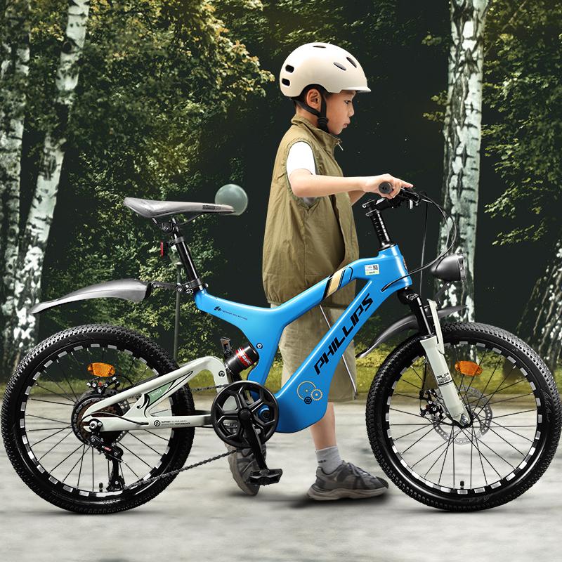菲利普镁合金软尾双减震儿童自行车男女孩学生青少年变速山地车