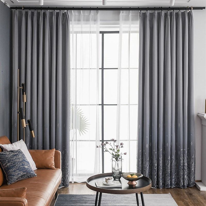 窗帘免打孔安装遮光渐变色双层客厅布纱一体卧室灰色纯色现代简约