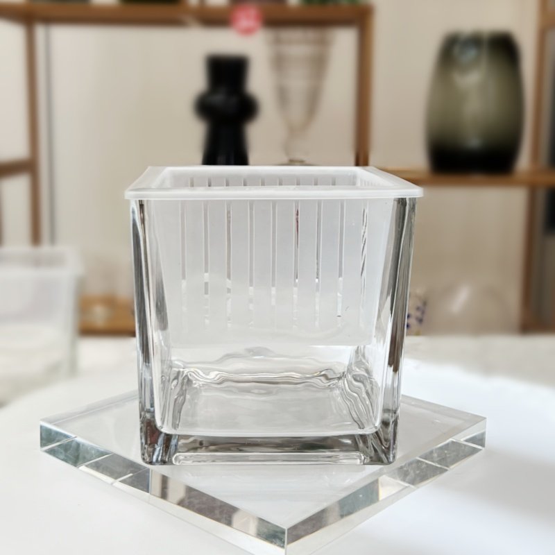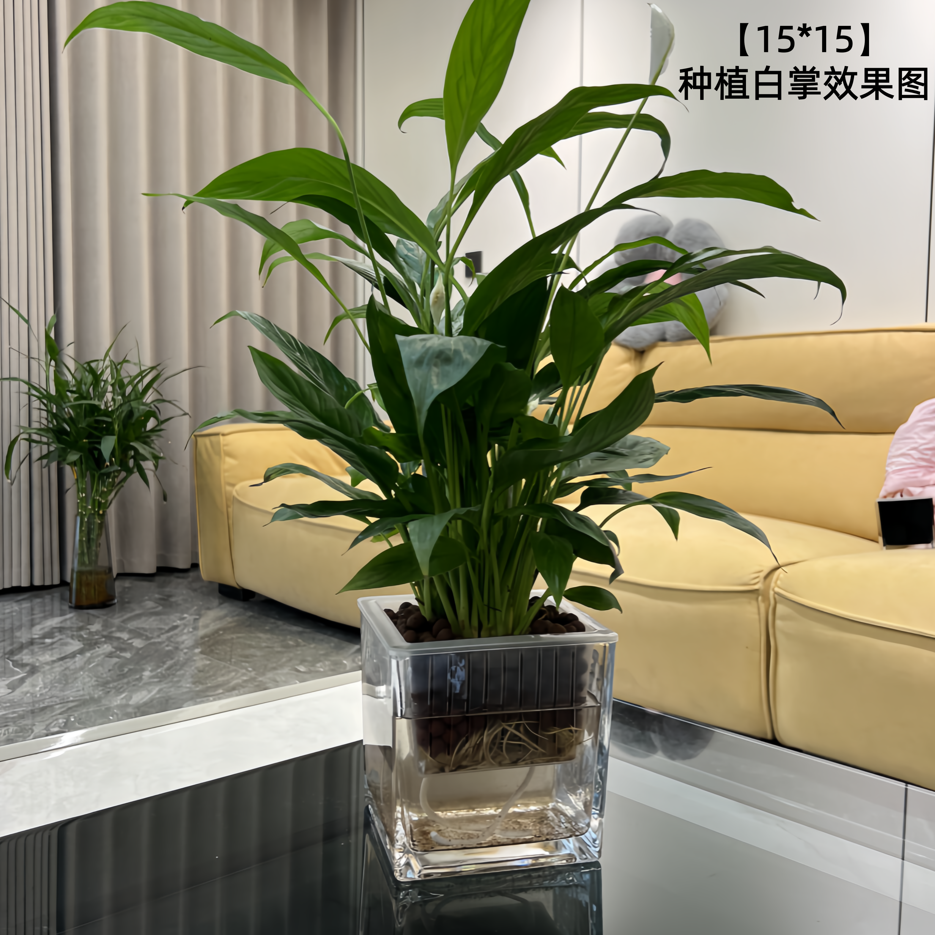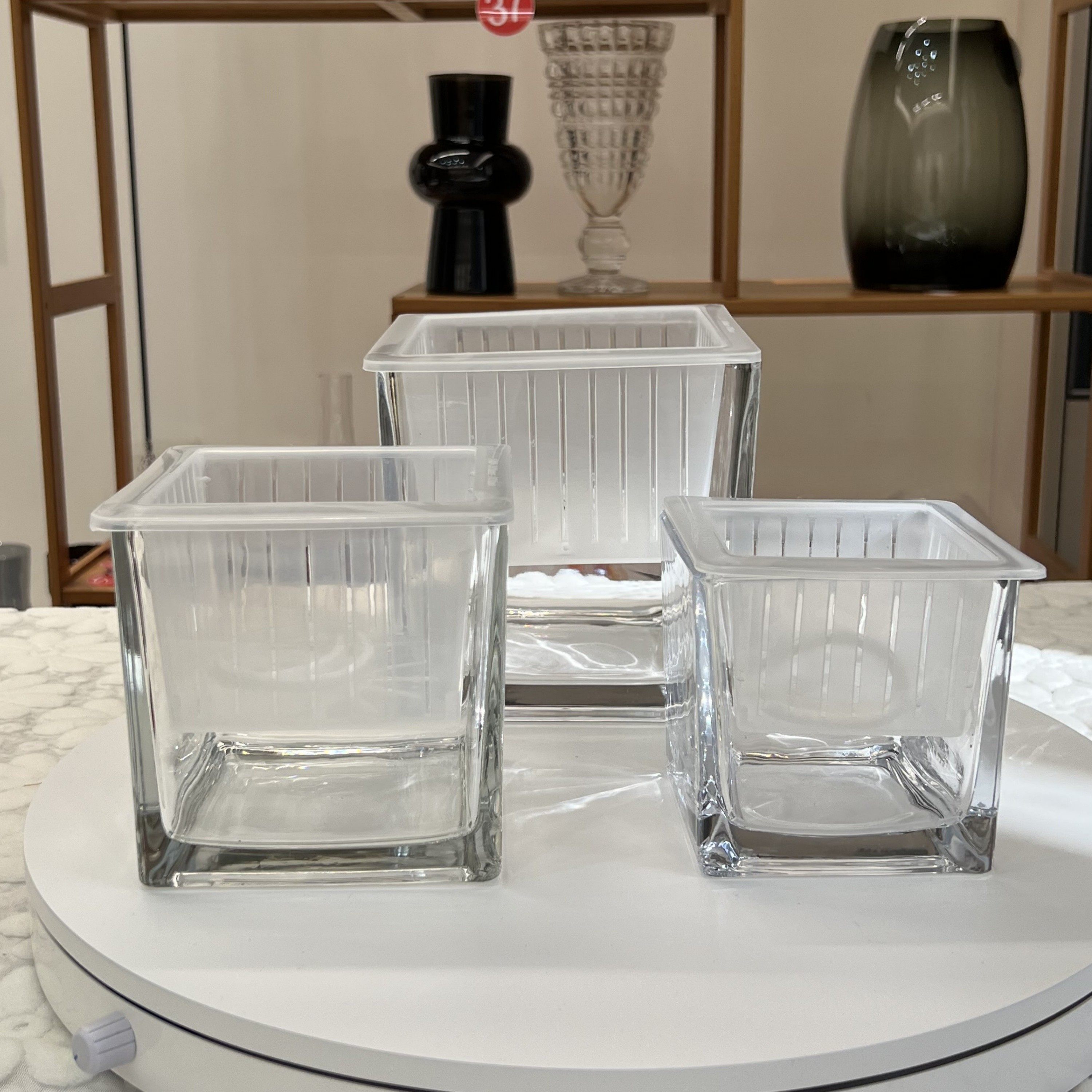 厂家直销正方形玻璃花瓶水培绿萝铜钱草红掌白掌植物透明插花摆件