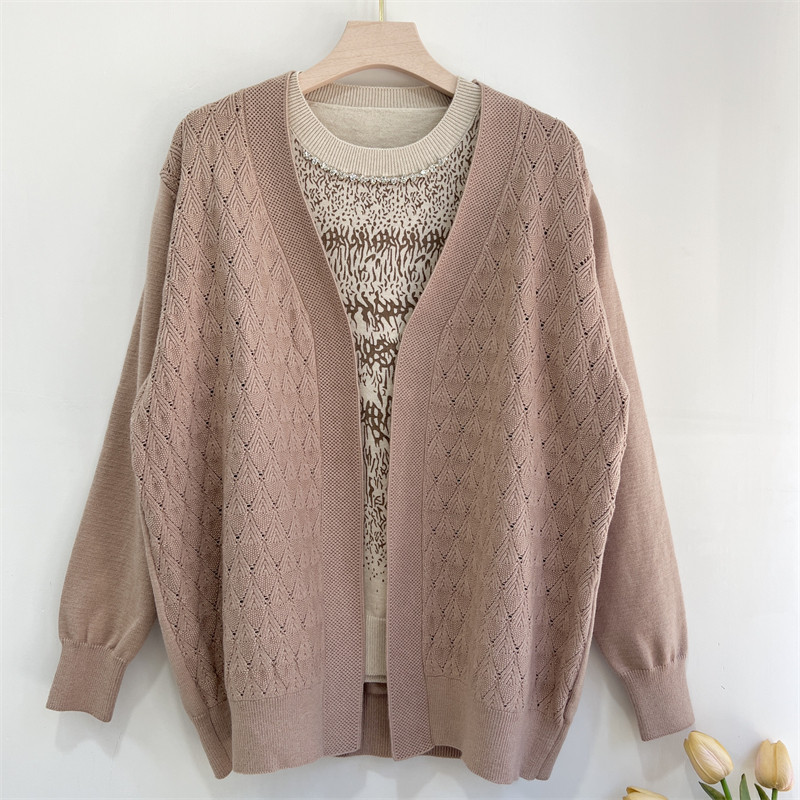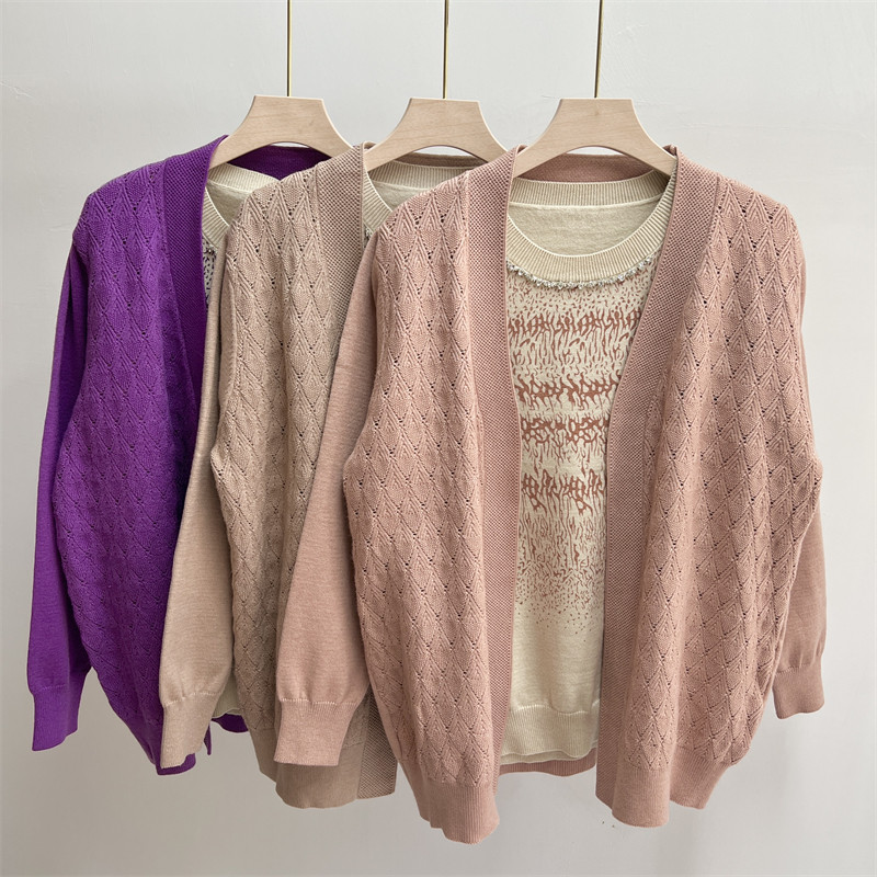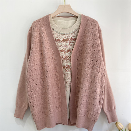 中年妈妈装秋装两件套2024新款针织外套春秋上衣服中老年女装套装