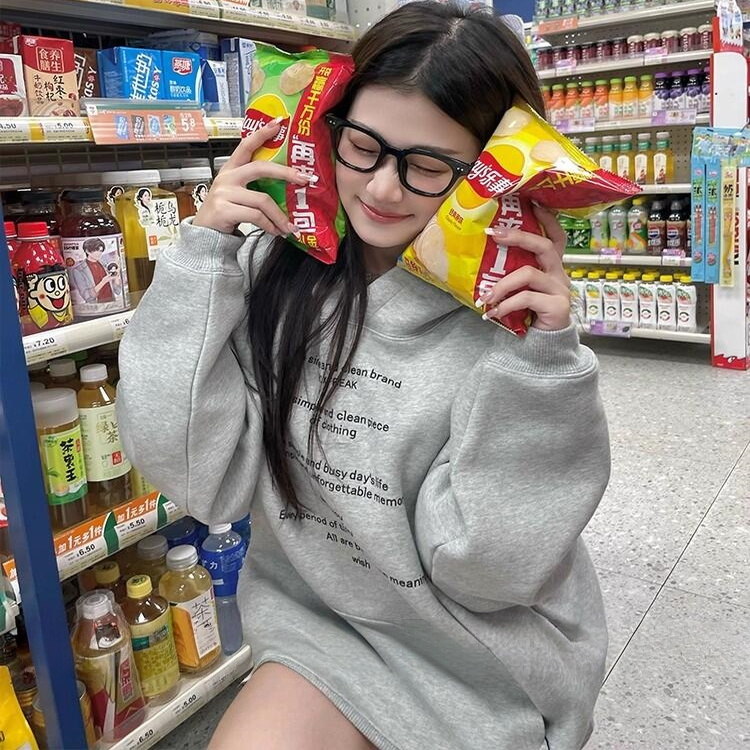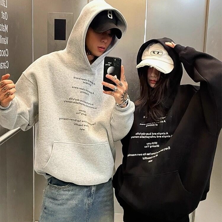 【现货】情侣款字母印花连帽美式卫衣女2025新款小个子巨好看上衣
