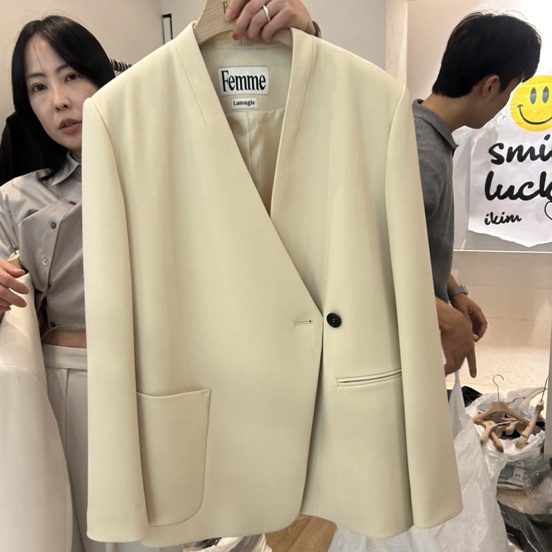 东大门V领小西装外套女2025春季新款韩版宽松休闲时尚一粒扣西服