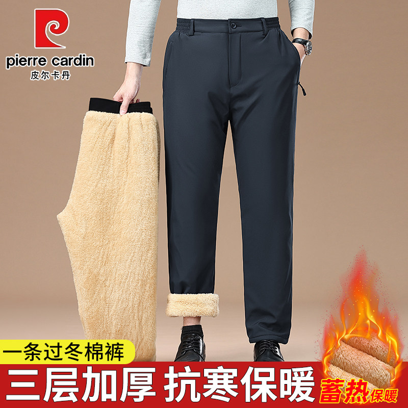 皮尔卡丹爸爸装冬季款中年加绒休闲裤男东北保暖加厚外穿棉裤长裤