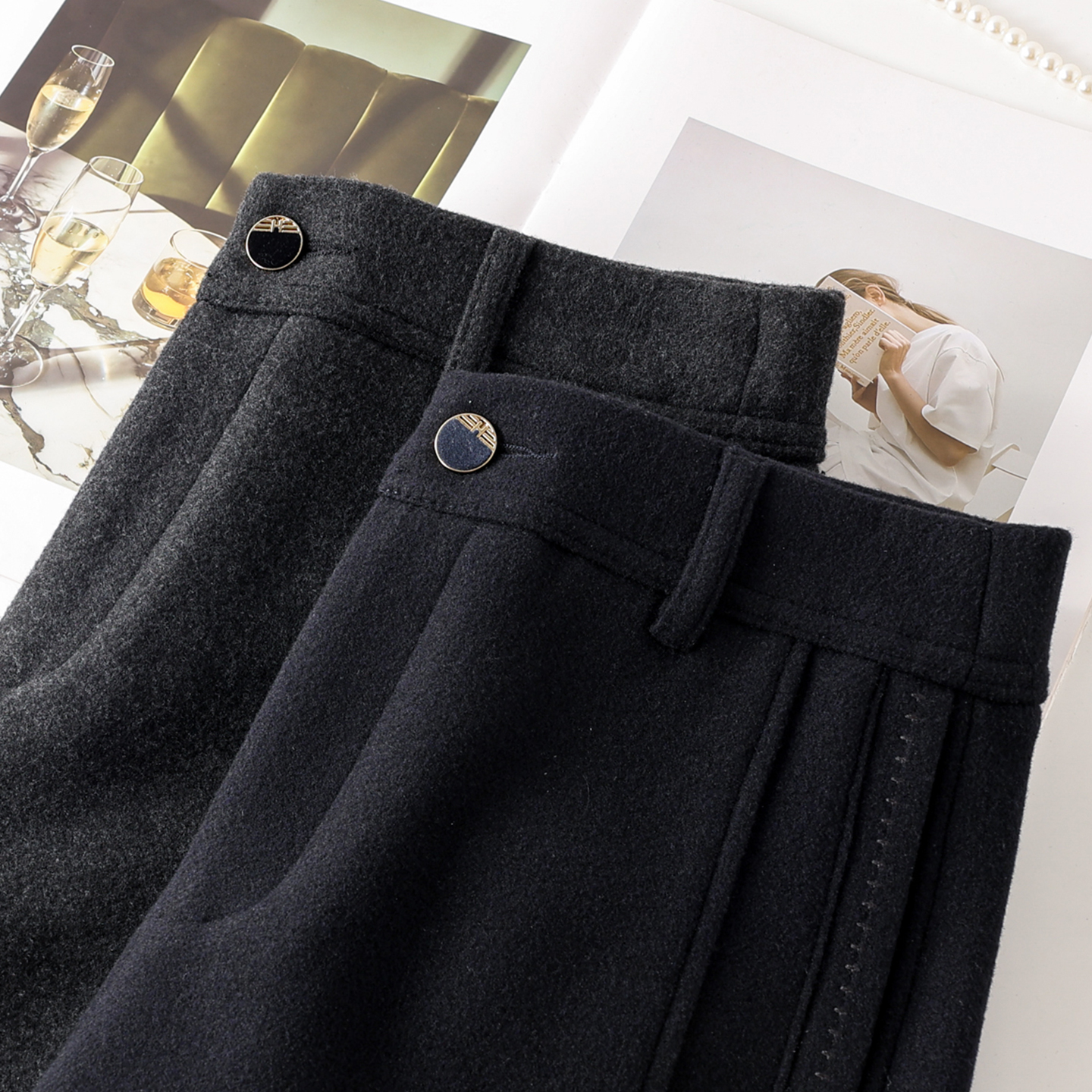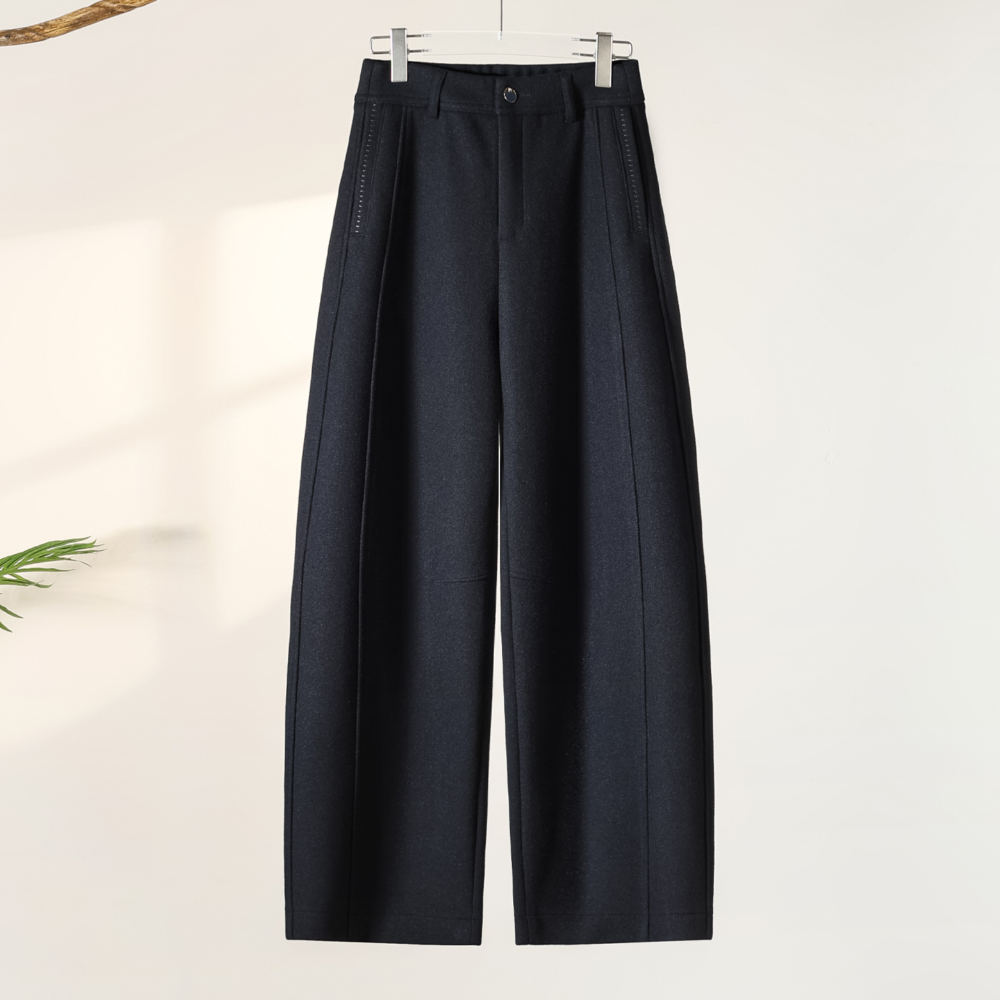 灰色绵羊毛西装哈伦裤女2025新款秋季高腰显瘦宽松休闲拖地弯刀裤