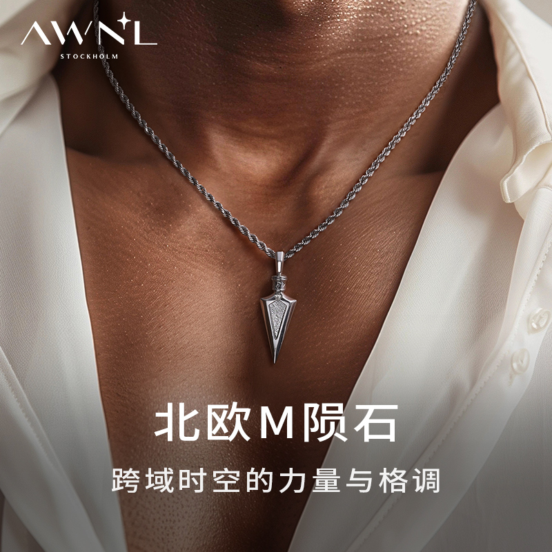 AWNL苏见信同款北欧M陨石时空之箭项链男天然精致礼物送男友