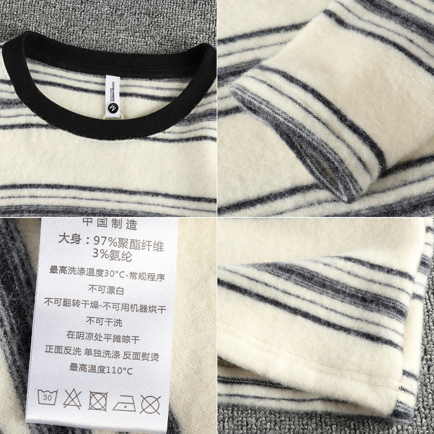 定织兔毛绒条纹面料圆领长袖T恤男女 韩风潮流个性logo青年打底衫